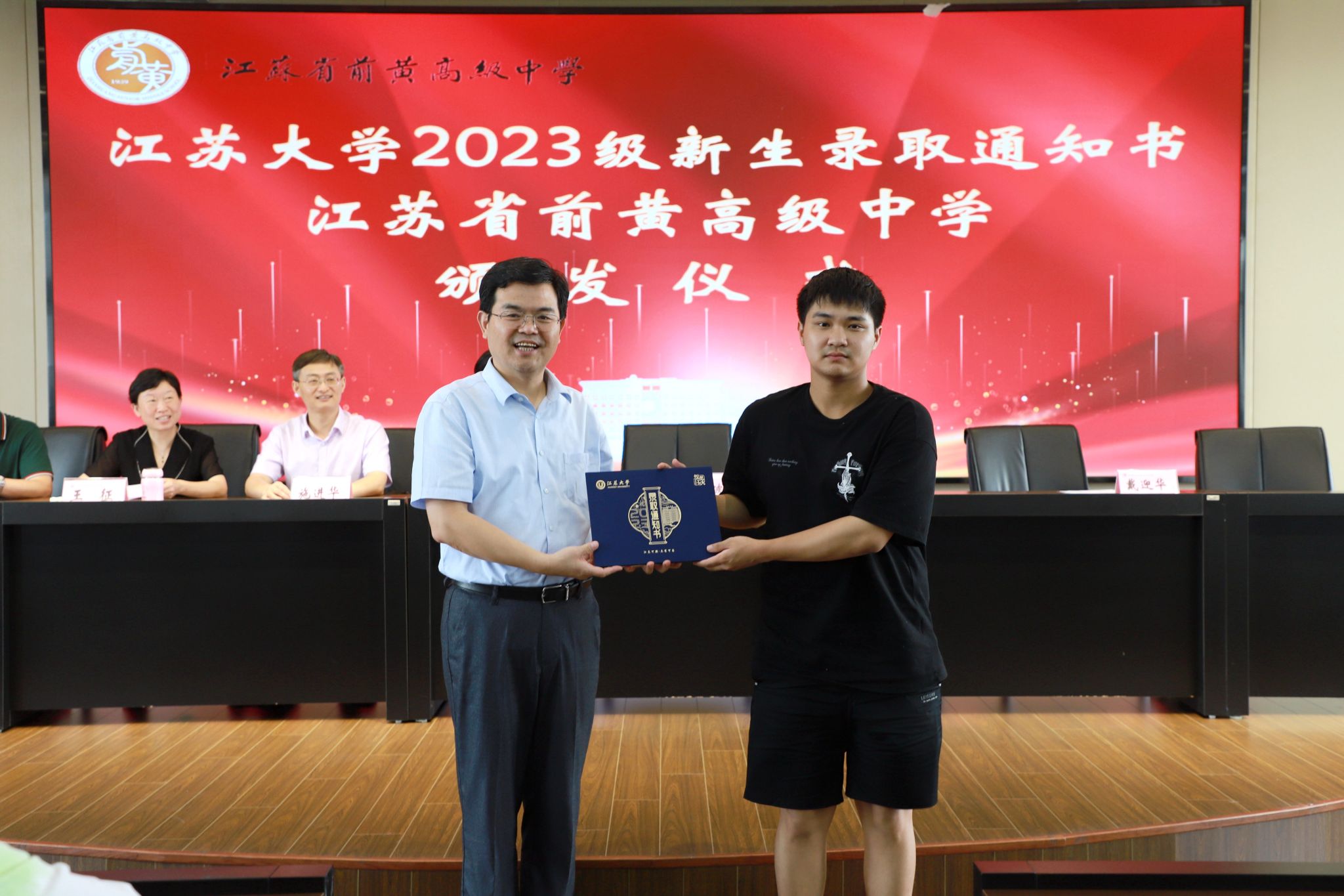 24日上午,李洪波來到江蘇省前黃中學發放錄取通知書,為30名江蘇大學2023級新生發放錄取通知書。