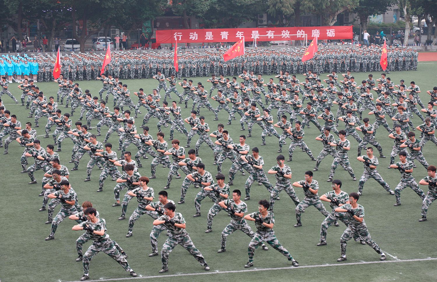 指揮員下達(dá)命令后,分列式正式開始,各方陣依次通過主席臺(tái)。隨后,軍體拳、格斗術(shù)和匕首操等軍訓(xùn)特色科目展示依次登場(chǎng)。