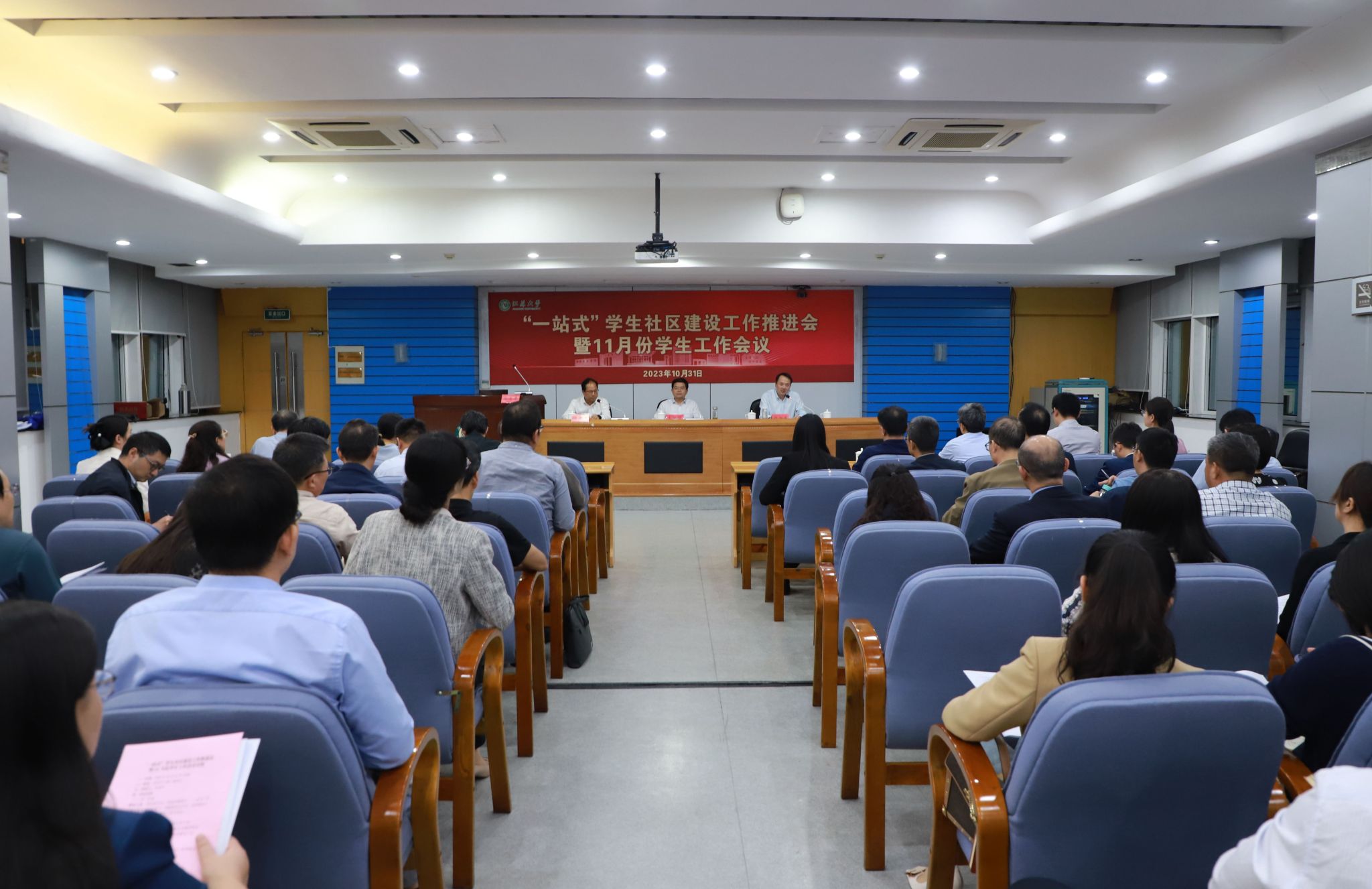 10月31日,“一站式”學生社區建設工作推進會暨11月份學生工作會議在會議中心第三報告廳舉行。校黨委書記李洪波,校黨委常委、副校長任旭東出席會議。會議由學生工作處處長任澤中主持。