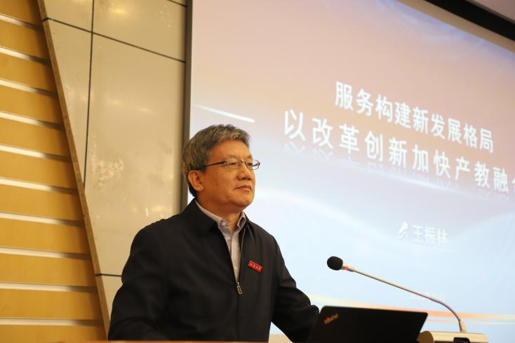 授聘儀式后,王振林作“構(gòu)建新發(fā)展格局背景下的產(chǎn)教融合”報告,講述了北自所在產(chǎn)教融合方面的探索與努力,提出國家構(gòu)建新發(fā)展格局對高校和企業(yè)提出了更高的要求,高校要結(jié)合產(chǎn)業(yè)發(fā)展現(xiàn)狀強化學(xué)科布局,企業(yè)要注重與高校的聯(lián)合創(chuàng)新,強調(diào)了人才的繼續(xù)培養(yǎng)。