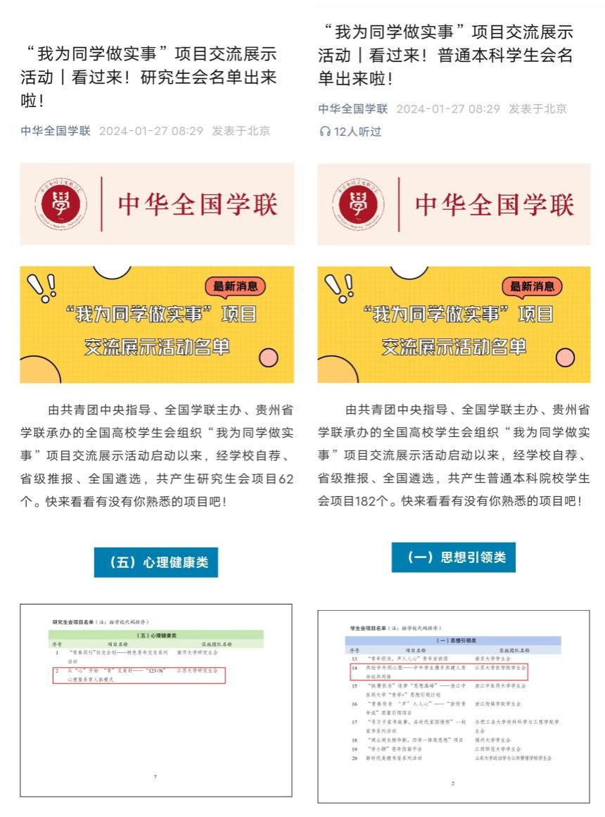 全國高校學生會組織“我為同學做實事”項目交流展示活動由共青團中央指導、全國學聯主辦、貴州省學聯承辦,共評選出研究生會項目62個、學生會項目182個。江蘇有8所高校12個項目入圍,入圍2個項目的高校僅有4所。