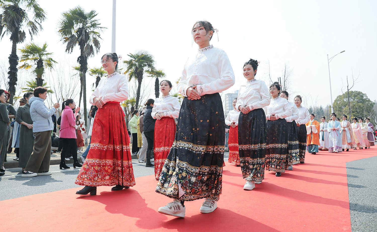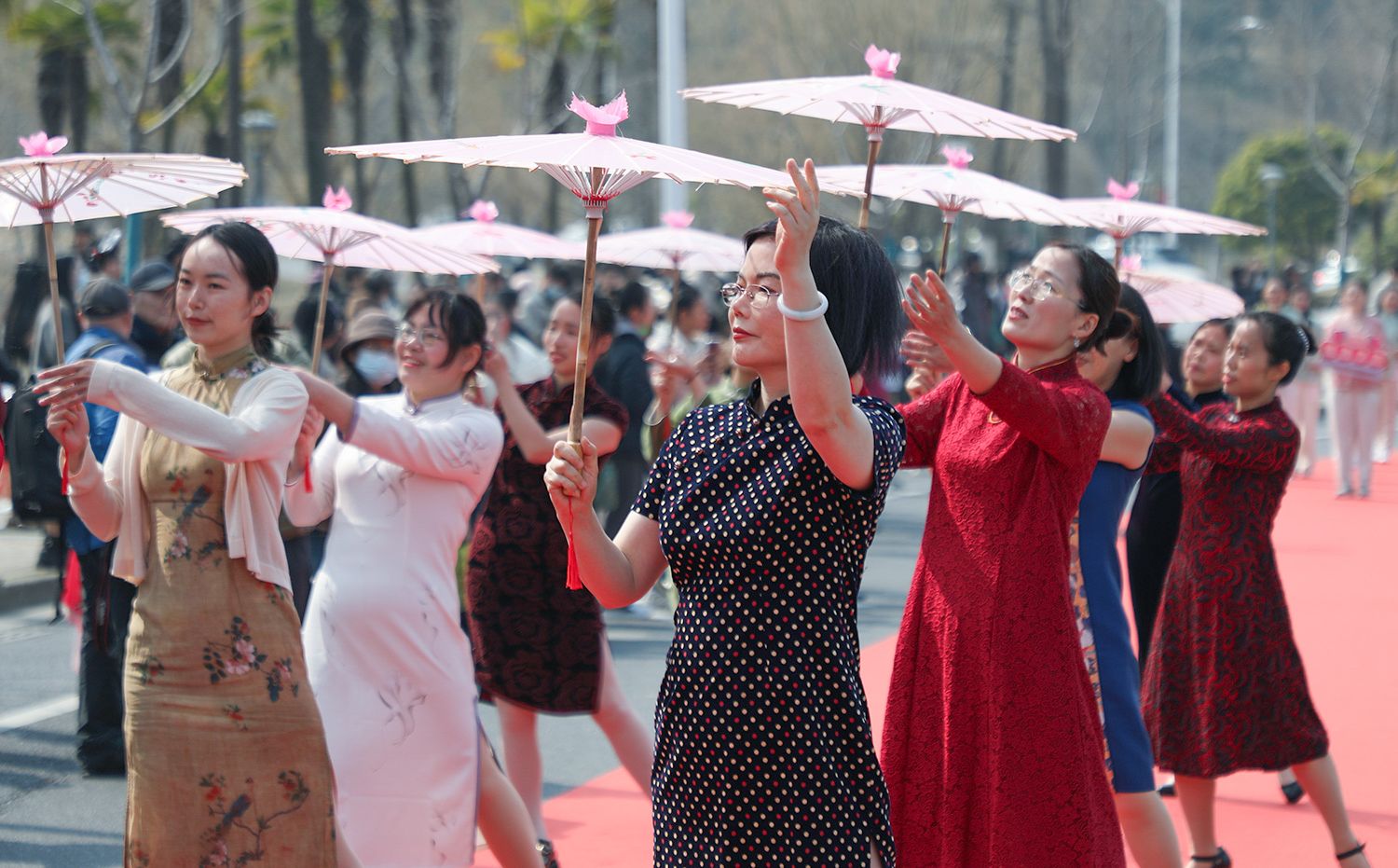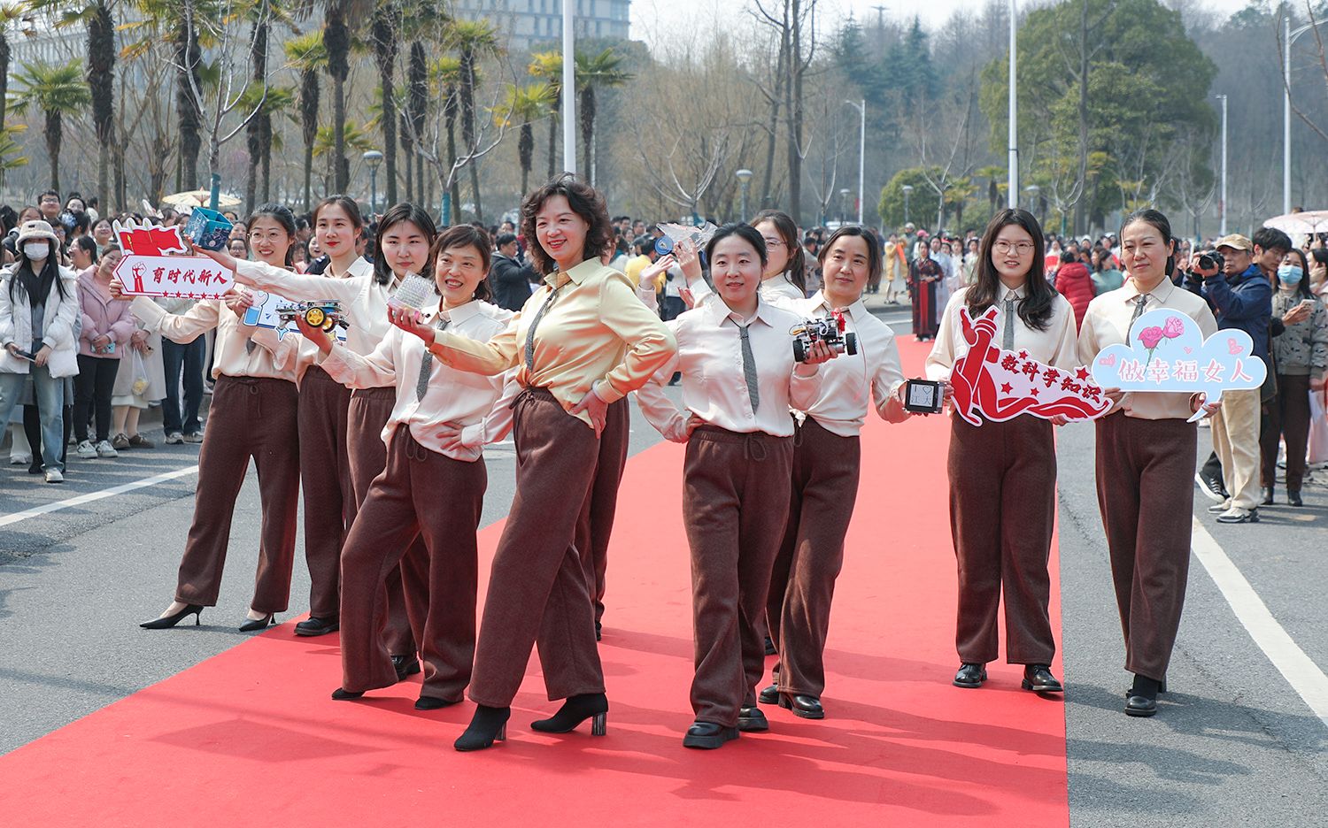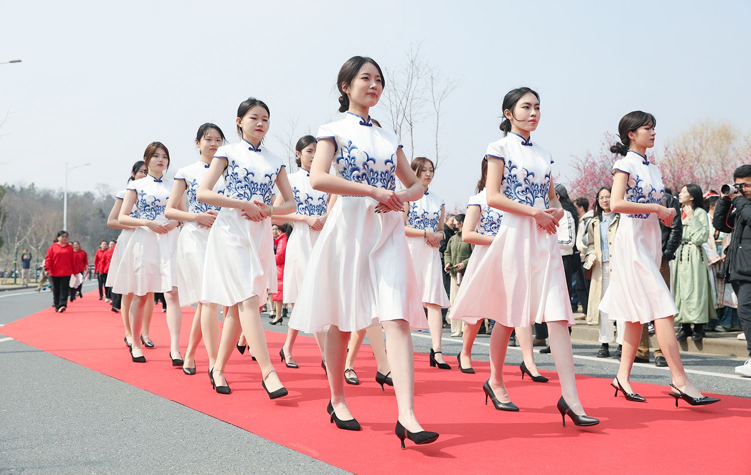 早春江大,處處是生機勃勃的景象。3月8日,是第114個國際勞動婦女節,學校在梅園舉辦“美麗邂逅,夢想綻放”慶祝“三八”國際婦女節活動暨首屆梅櫻節開幕式。由女教工、女大學生、女企業家組成的33支隊伍共聚梅園,借滿園春色,用“紅毯秀”的形式展示女性風采,慶祝自己的節日。