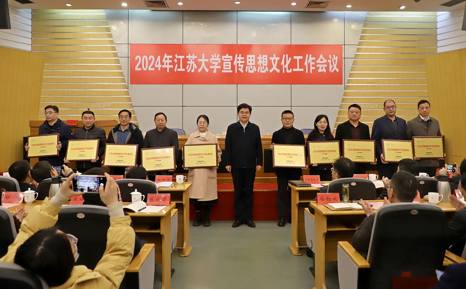 會上,對獲評2023年度二級黨組織理論學習中心組示范點、校園文化建設示范點、新聞宣傳工作先進單位的單位進行了表彰。