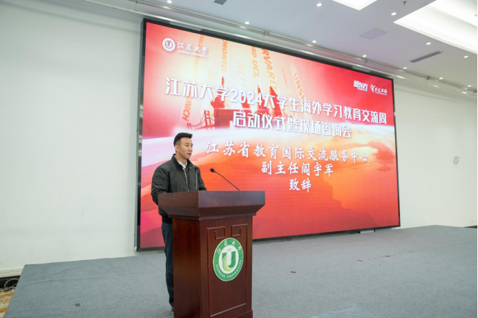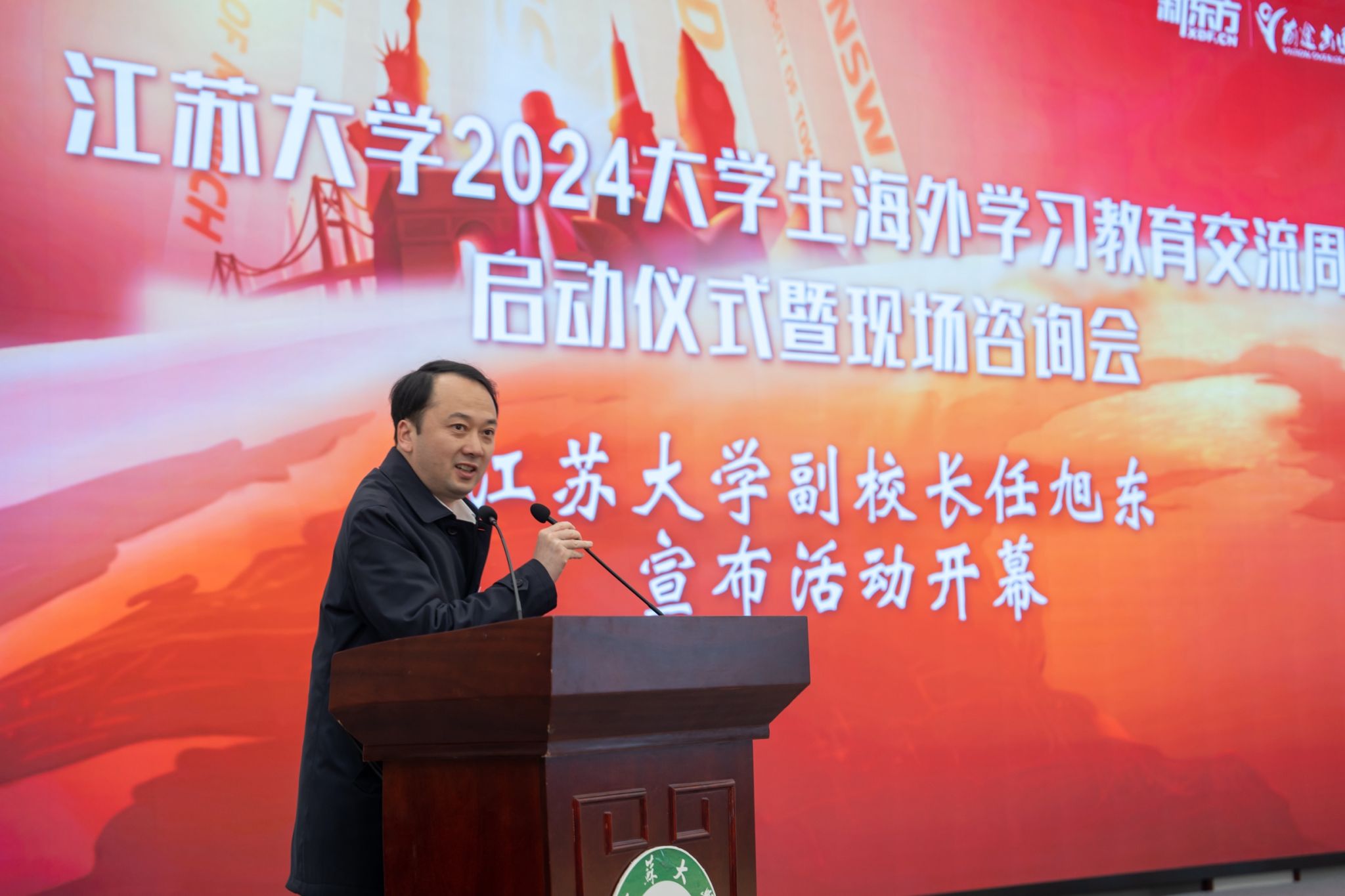 任旭東宣布江蘇大學2024大學生海外學習教育交流周正式啟動。