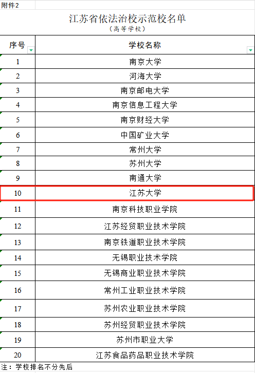 日前,江蘇省教育廳公布首批江蘇省依法治校示范校名單,我校位列其中。