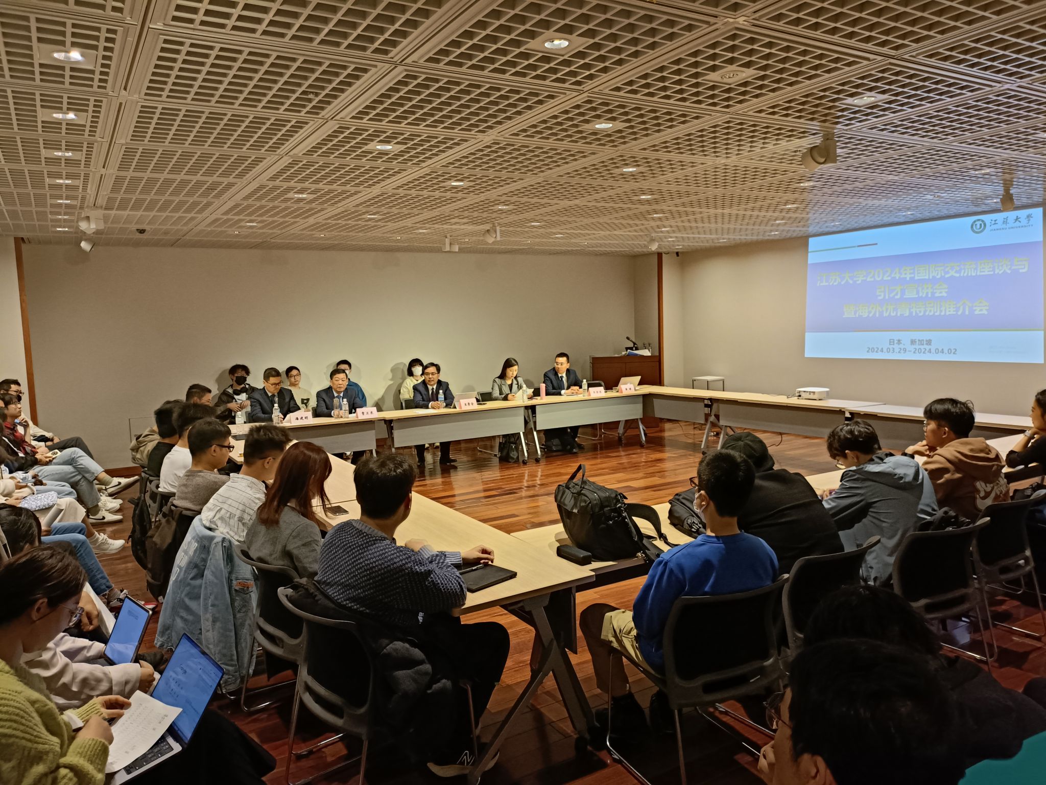 訪問期間,代表團先后在廣島大學(xué)、東京大學(xué)、南洋理工大學(xué)舉辦了三場江蘇大學(xué)2024國際交流座談與全球引才宣講會,共吸引了200余位人才關(guān)注咨詢,120余位人才現(xiàn)場參會交流。招聘宣講會上,王景全向參會青年學(xué)者介紹了江蘇大學(xué)概況、引才育才相關(guān)政策、資源待遇等,他表示,學(xué)校長期以來高度重視人才工作,不斷完善人才引育制度,著力構(gòu)建人才發(fā)展良好生態(tài),并誠摯歡迎廣大青年英才加盟江蘇大學(xué)。現(xiàn)場氣氛熱烈,青年學(xué)者就研究方向和入職條件等進行了深入交流。