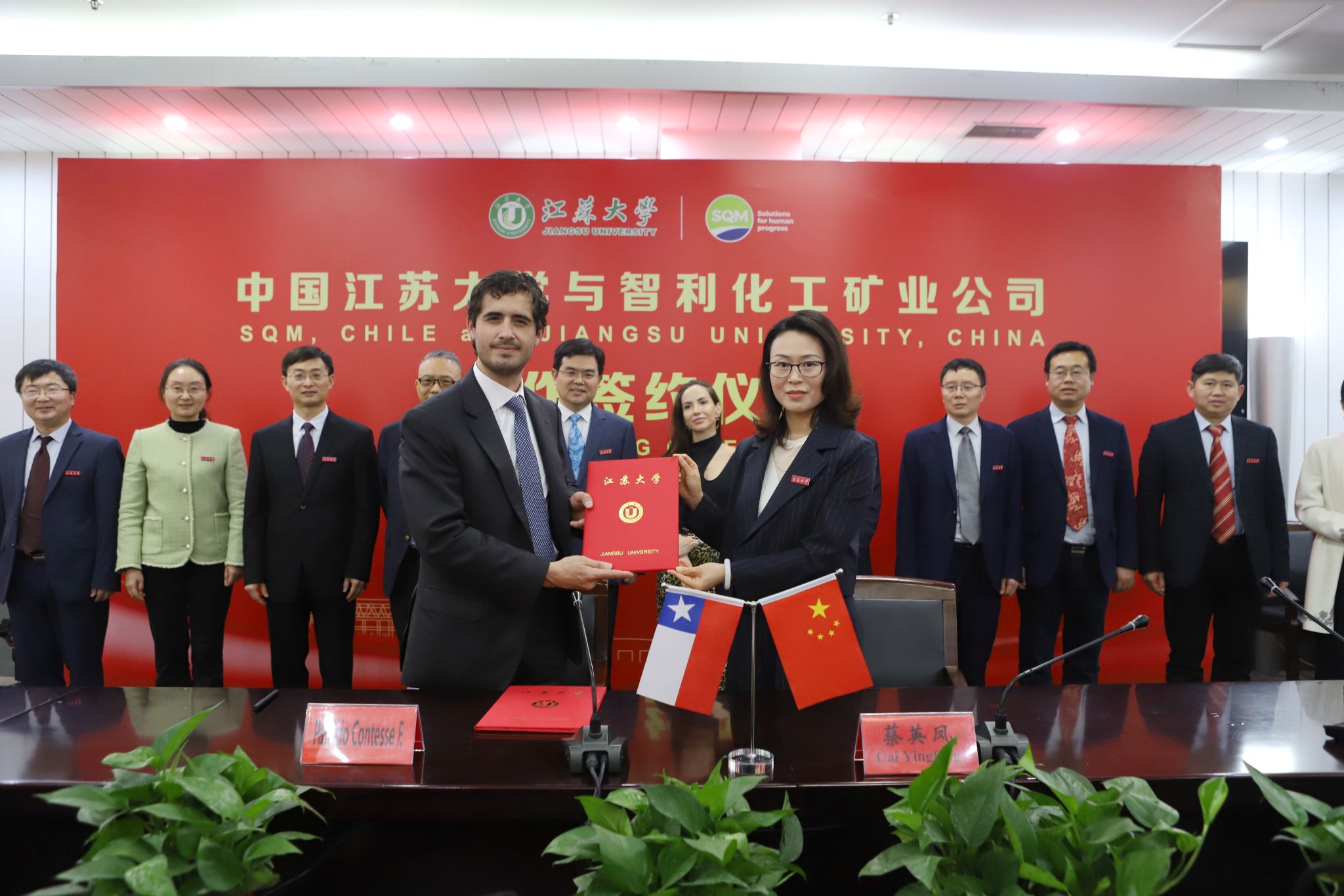 簽約儀式上,李洪波在致辭中說,堅持開放辦學的江蘇大學愿意與包括智利化工礦業公司在內的世界各國企業合作,共同探索國際產學研用合作新模式,希望江蘇大學與智利化工礦業公司的合作將為雙方事業高質量發展注入新優勢、產生新動能,為培育發展清潔能源、人類健康新質生產力,促進兩國交流合作、造福人民作出積極貢獻。