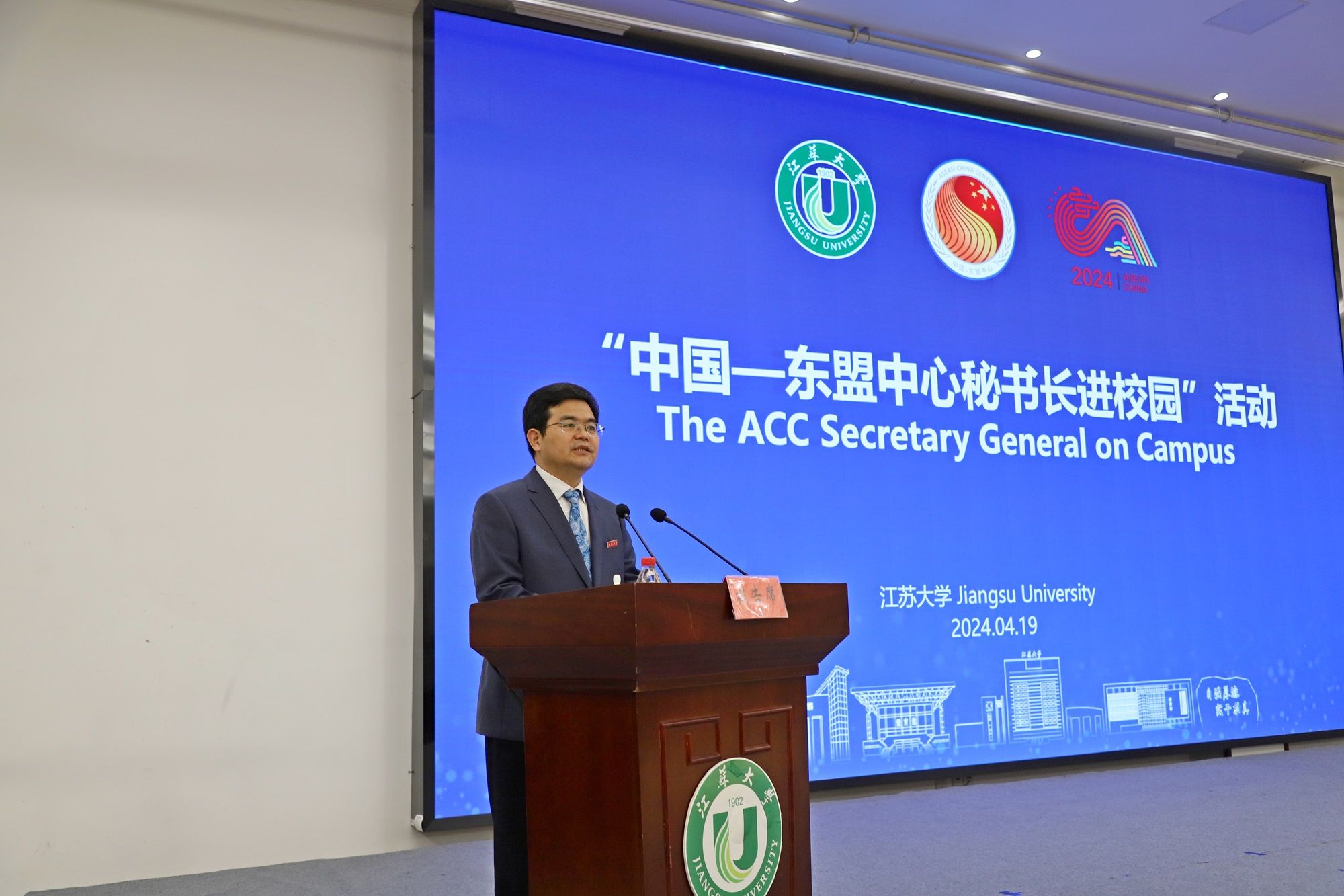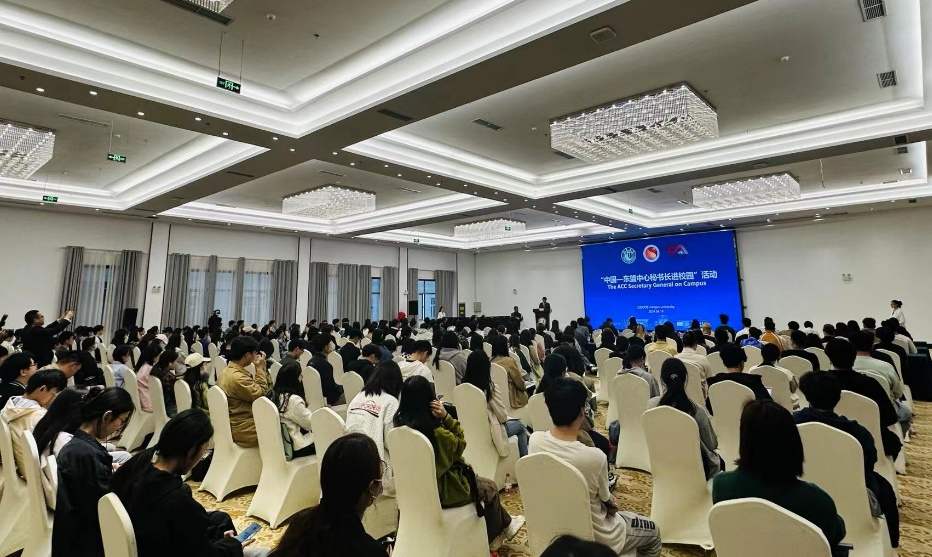 4月19日下午,“中國—東盟中心秘書長進校園”活動在青教公寓三江廳舉行。史忠俊,校黨委書記李洪波,校全球發展與安全研究院理事長徐步,中國—東盟中心綜合協調部主任孫毅、新聞公關部副主任王妍、新聞公關部官員張尚武,學校國際處、海外教育學院有關領導出席活動,近兩百名中國和東盟國家師生代表參加活動。活動由副校長蔡英鳳主持。
