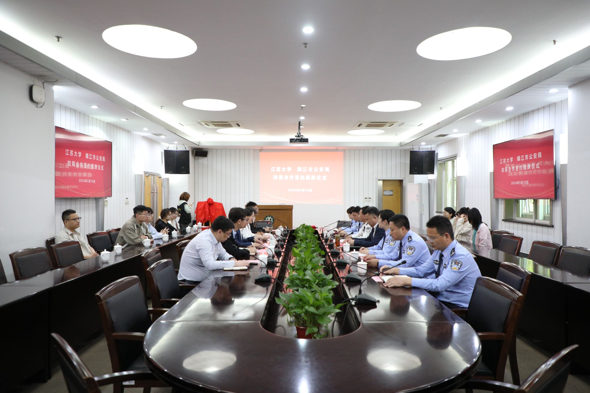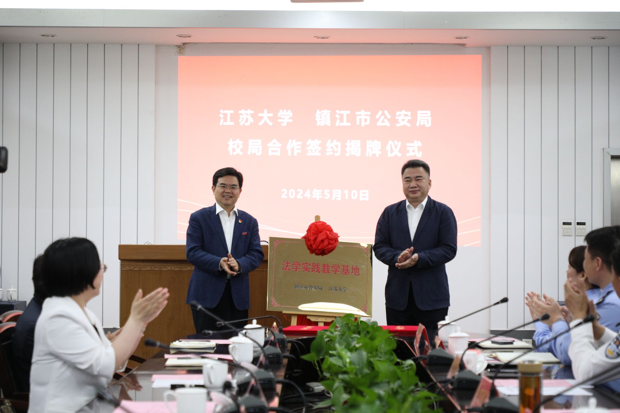 5月10日上午,我校與鎮江市公安局合作簽約揭牌儀式在學校會議中心第二報告廳舉行。雙方將圍繞人才培養、科研和調研合作、民警培訓、實踐教學等領域進行全方位的交流與合作,促進法治理論與執法實踐深度融合。