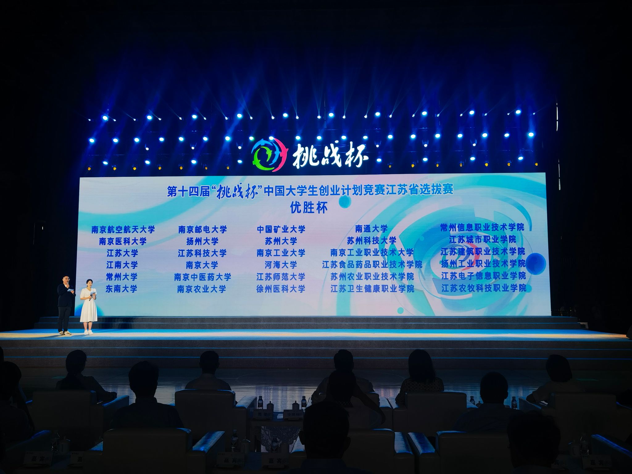 5月17日至19日,第十四屆“挑戰杯”中國大學生創業計劃競賽江蘇省選拔賽終審決賽在南京醫科大學舉行。我校4件作品斬獲金獎,金獎數量位居全省第4,捧得省賽“優勝杯”。