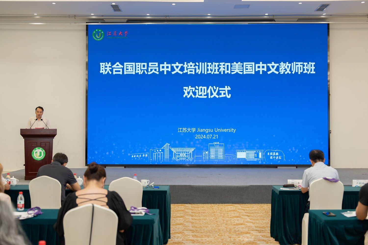 聯合國語言部中文組原組長、聯合國赴華培訓項目負責人何勇,校黨委常委、副校長任旭東,鎮江市外事辦公室主任盧利林,我校黨委統戰部、國際合作與交流處、海外教育學院、文學院及南京大學海外教育學院相關負責人出席活動。