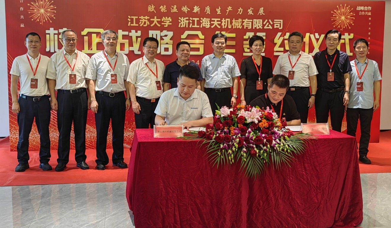 隨后,舉行了江蘇大學-浙江海天機械有限公司戰略合作簽約儀式。這是江蘇大學在溫嶺市農機領域的第一個合作項目,也標志著江蘇大學在溫嶺市產學研合作領域得到了進一步拓展。