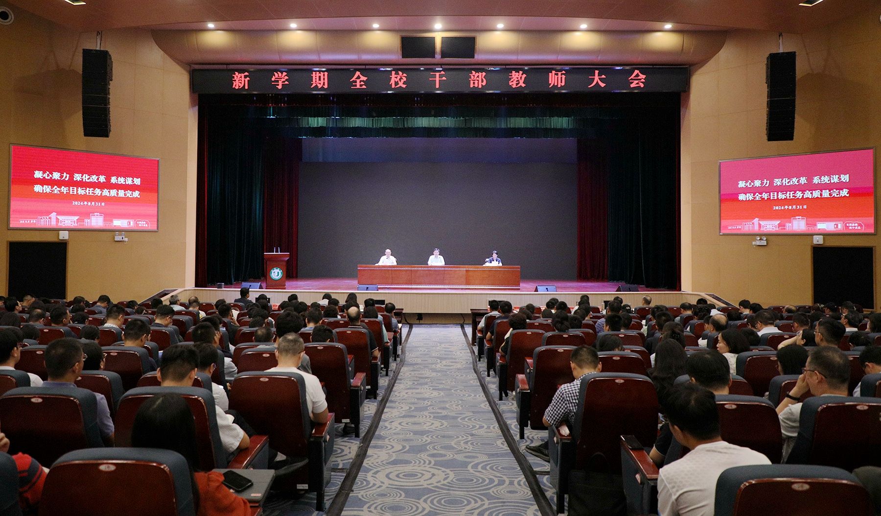 8月31日,學校在小禮堂召開新學期全校干部教師大會,回顧總結(jié)上半年工作,結(jié)合新形勢新要求對下半年工作進行部署,進一步凝心聚力、深化改革、系統(tǒng)謀劃,確保高質(zhì)量完成全年目標任務(wù)。