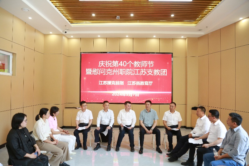 9月7日,在第40個教師節(jié)即將來臨之際,江蘇省教育廳一級巡視員袁靖宇赴克孜勒蘇職業(yè)技術(shù)學(xué)院,親切看望慰問江蘇支教教師,吳秀琳作為代表現(xiàn)場發(fā)言。
