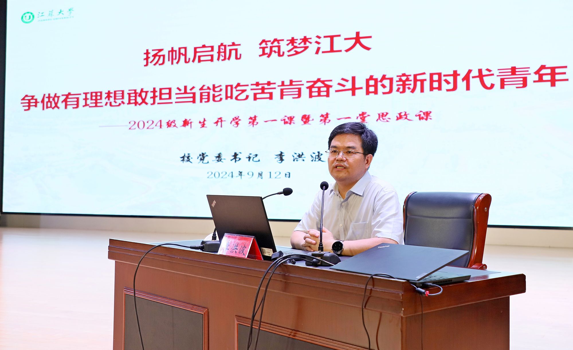 9月12日,學校舉辦2024級新生開學第一課暨第一堂思政課,引導新生更好地適應大學生活,幫助他們系好大學的“第一粒扣子”。校黨委書記李洪波以《揚帆啟航 筑夢江大 爭做有理想敢擔當能吃苦肯奮斗的新時代青年》為題,為全體新生授課。