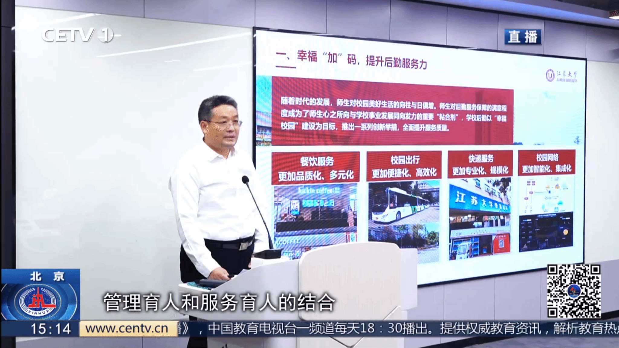 發(fā)布會(huì)上,我校黨委常委、副校長楊道建作題為《用好“加減乘除”工作法,強(qiáng)化后勤效能推動(dòng)力》的主題報(bào)告,并接受中國教育電視臺(tái)的采訪,詳細(xì)分享了我校在后勤服務(wù)方面的創(chuàng)新舉措和取得的顯著成績。