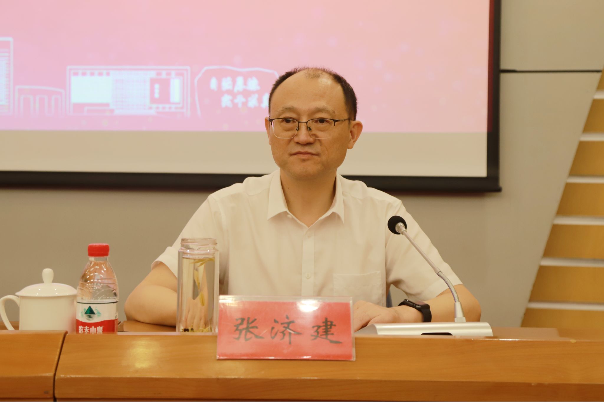 張濟建從“‘學’字當頭,推動黨紀學習教育‘見真章’;‘導’字為重,推動黨紀學習教育‘動真格’;‘通’字為要,推動黨紀學習教育‘求真效’”三方面總結學校黨紀學習教育開展情況。