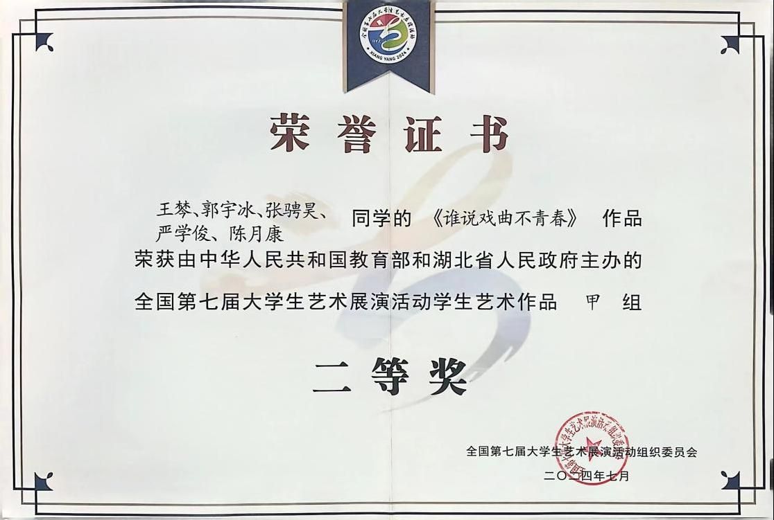 近日,全國(guó)第七屆大學(xué)生藝術(shù)展演活動(dòng)結(jié)果正式揭曉。我校報(bào)送的微電影《誰(shuí)說(shuō)戲曲不青春》榮獲全國(guó)第七屆大學(xué)生藝術(shù)展演活動(dòng)學(xué)生作品甲組二等獎(jiǎng)。