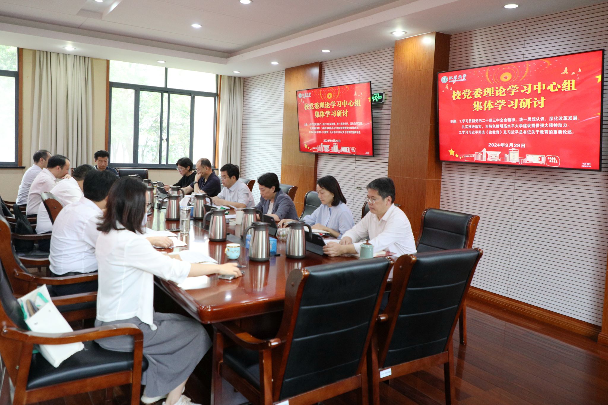 9月29日,校黨委理論學習中心組在行政一號樓201會議室圍繞學習貫徹黨的二十屆三中全會精神、全國教育大會精神、習近平同志《論教育》以及習近平總書記關于教育重要論述等內容開展專題學習研討。在校校黨委理論學習中心組成員參加集體學習研討,集體學習研討由校黨委書記李洪波主持。
