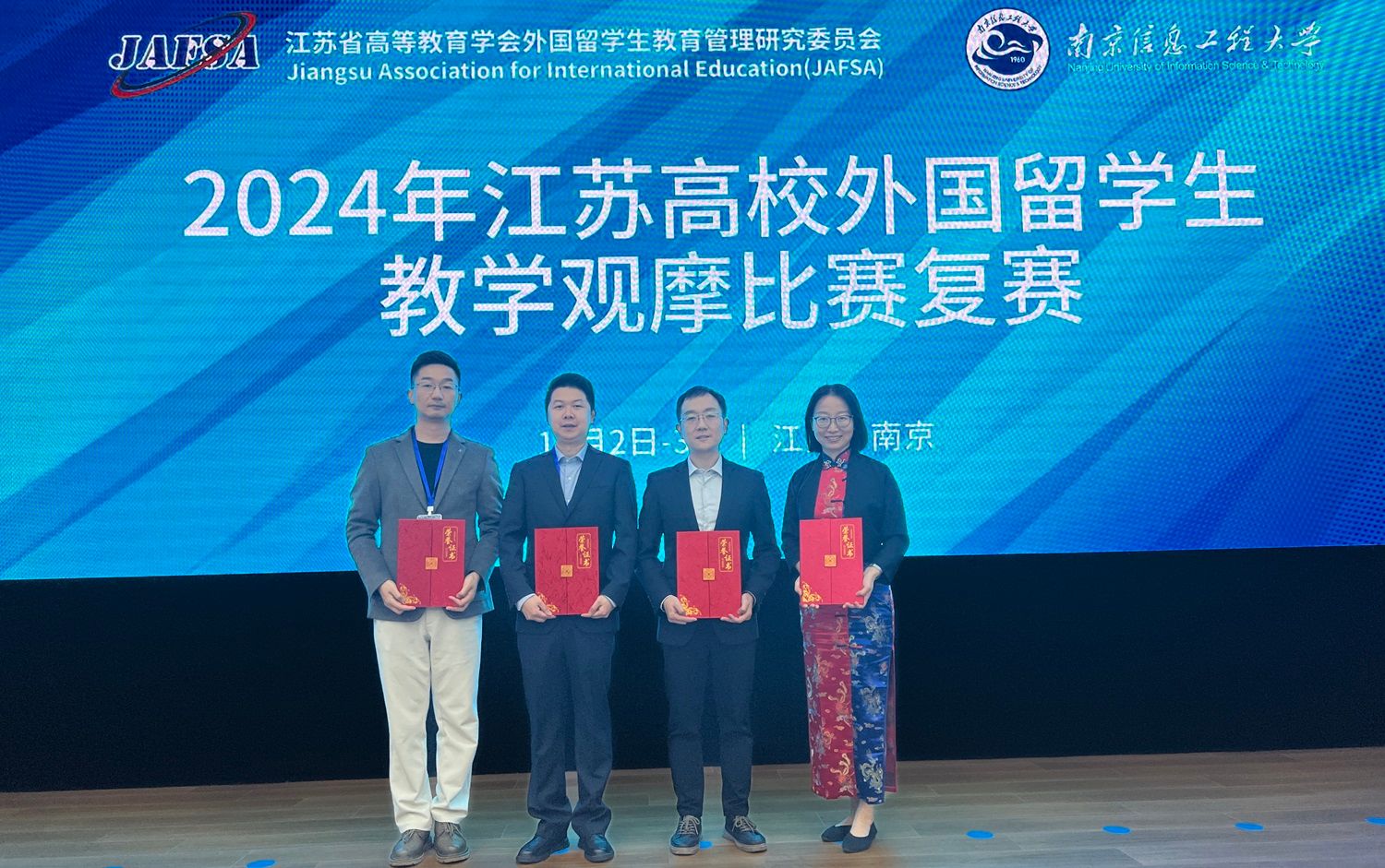 11月2日至3日,江蘇高校外國留學生教學觀摩比賽(復賽)在南京信息工程大學舉辦。我校獲特等獎一項、一等獎三項,是2022年賽事設立以來我校教師連續第三次獲得特等獎和一等獎。