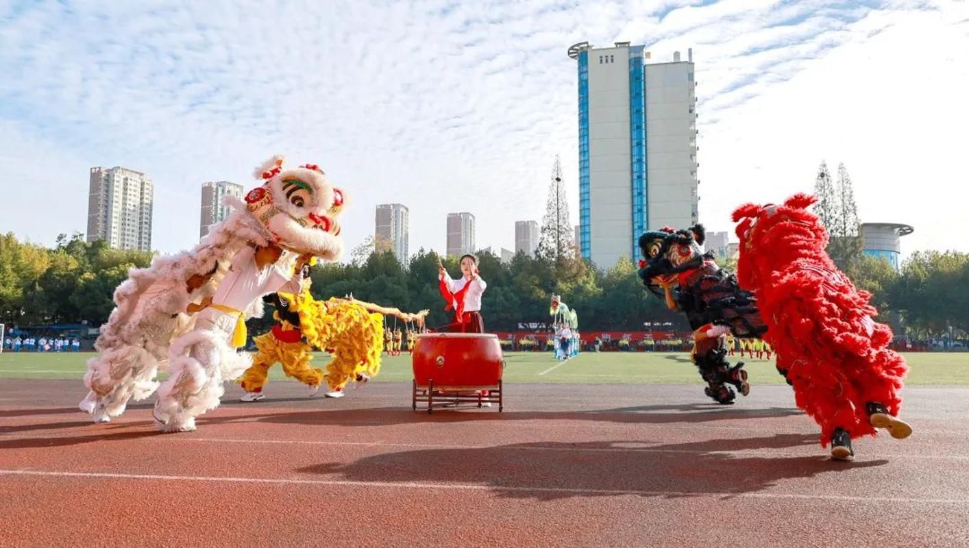 開幕式上,師生表演了龍獅、武術、團體操和彩帶龍等文體節目。
