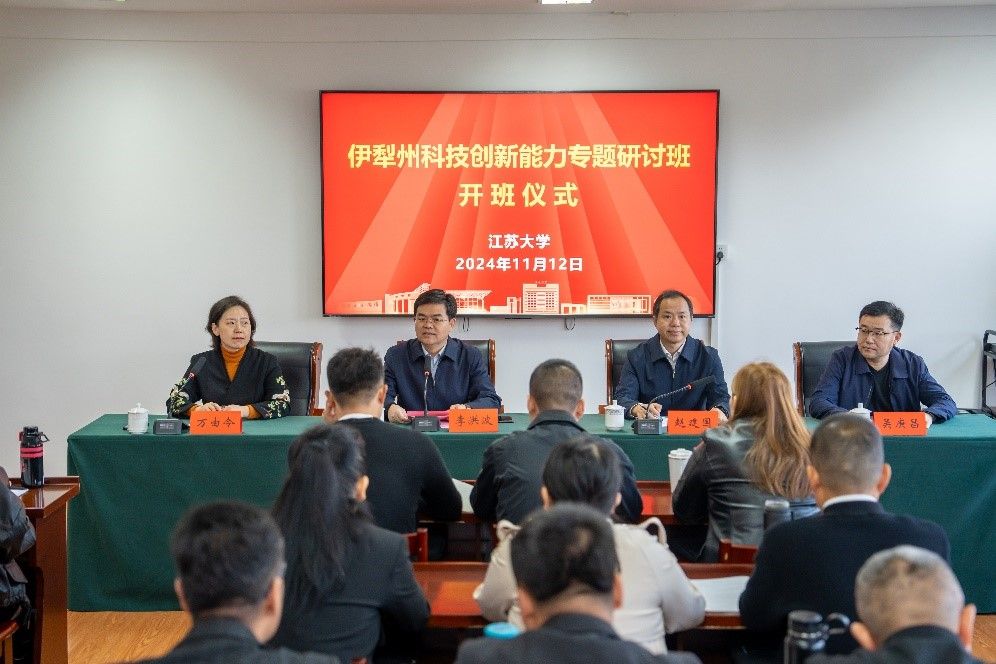 11月12日,由我校承辦的“伊犁州科技創新能力專題研討班”開班儀式在學校文華樓506會議室舉行。校黨委書記李洪波,江蘇省科技廳黨組成員、副廳長趙建國,伊犁州科技局黨組成員、副局長吳庚昌應邀出席開班儀式。伊犁州科技系統、高校、科研院所和企業的科研骨干40余人參加開班儀式,開班儀式由食生學院黨委書記萬由令主持。