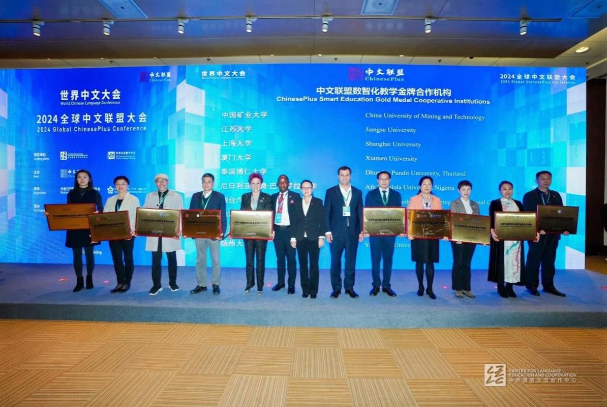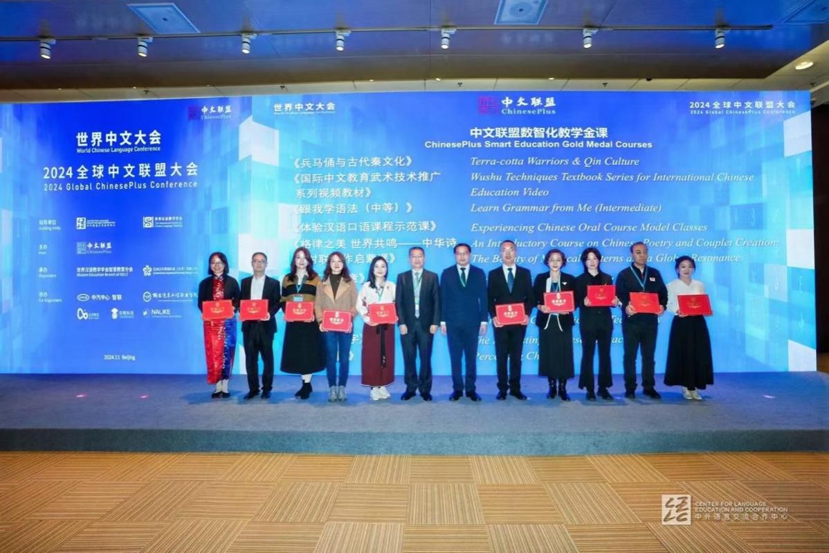 11月15日至17日,2024世界中文大會(huì)在北京國(guó)家會(huì)議中心舉行,大會(huì)以“聯(lián)通融合 傳承創(chuàng)新”為主題。國(guó)家副主席韓正出席大會(huì)開(kāi)幕式,宣讀習(xí)近平主席賀信并致辭。來(lái)自160余個(gè)國(guó)家和地區(qū)的2000多名政府官員、校長(zhǎng)、專家學(xué)者、師生代表和駐華使節(jié)等出席大會(huì)。在大會(huì)專項(xiàng)論壇2024全球中文聯(lián)盟大會(huì)上,我校獲中文聯(lián)盟數(shù)智化教學(xué)“金牌合作機(jī)構(gòu)”和“金課”稱號(hào)。我校文學(xué)院(語(yǔ)言文化中心)院長(zhǎng)任曉霏一行受邀參會(huì)。