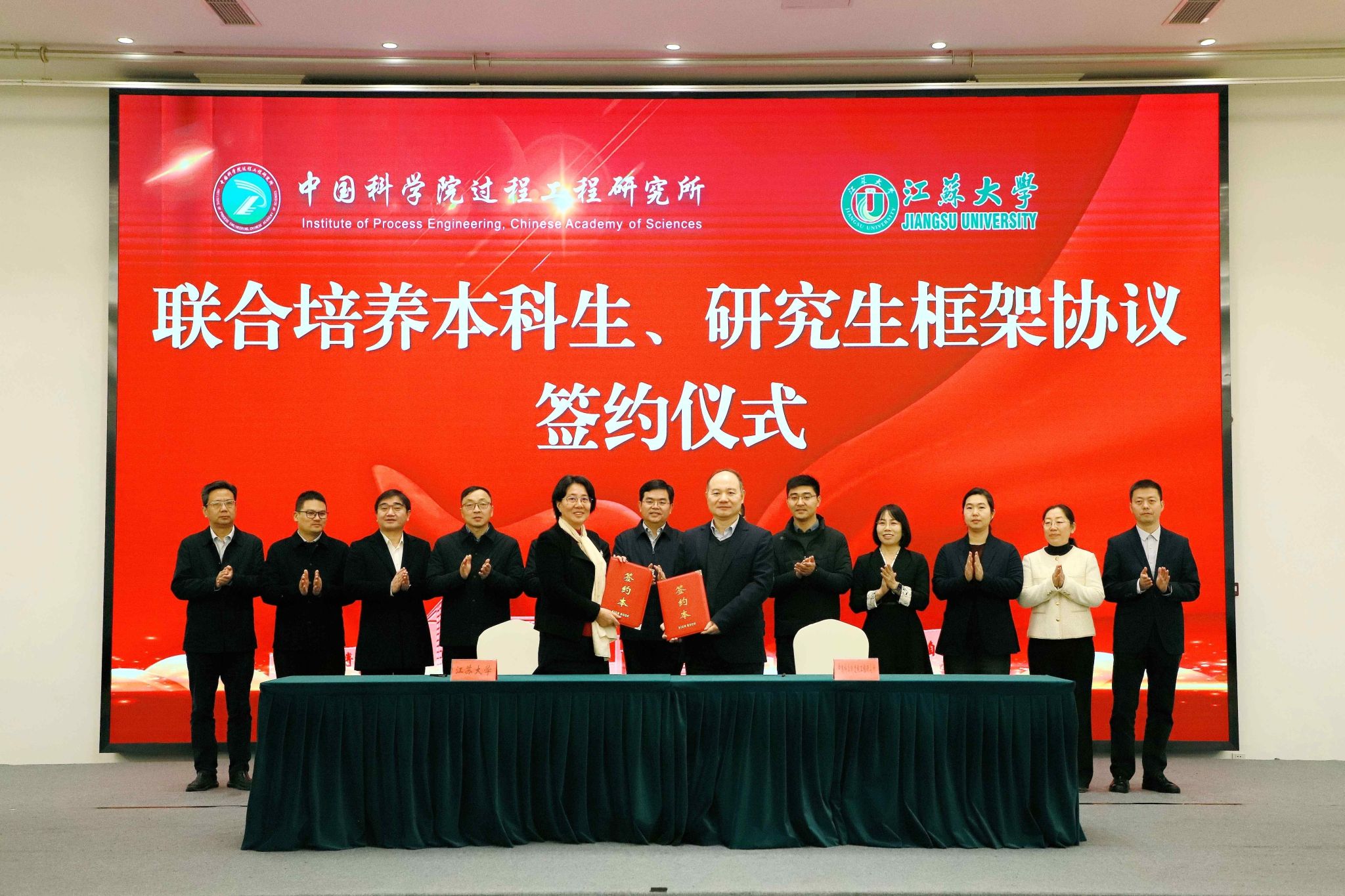 11月25日,江蘇大學與中國科學院過程工程研究所聯合培養本科生、研究生框架協議簽約儀式舉行。中國科學院過程工程研究所所長楊超,綠色化工研究部研究員馮鑫、李政,江蘇大學黨委書記李洪波、校長邢衛紅、副校長鄒小波以及相關部門負責人和師生代表參加簽約儀式。儀式由鄒小波主持。