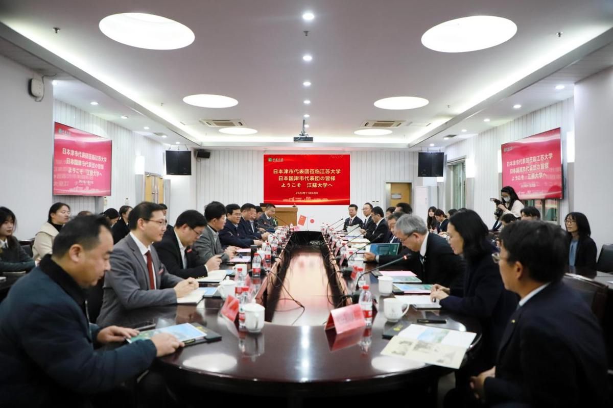 11月22日,在鎮(zhèn)江市人民政府外事辦公室陪同下,日本津市市長前葉泰幸、議長青山昇武率領(lǐng)的代表團(tuán)一行來訪江蘇大學(xué),校黨委書記李洪波在會議中心第二報告廳與代表團(tuán)成員進(jìn)行了友好會談。校長辦公室、國際合作與交流處、校友會與對外聯(lián)絡(luò)辦公室、農(nóng)業(yè)工程學(xué)院、汽車與交通工程學(xué)院、藝術(shù)學(xué)院、外國語學(xué)院、海外教育學(xué)院相關(guān)人員及外國語學(xué)院日語系學(xué)生代表參加會談。