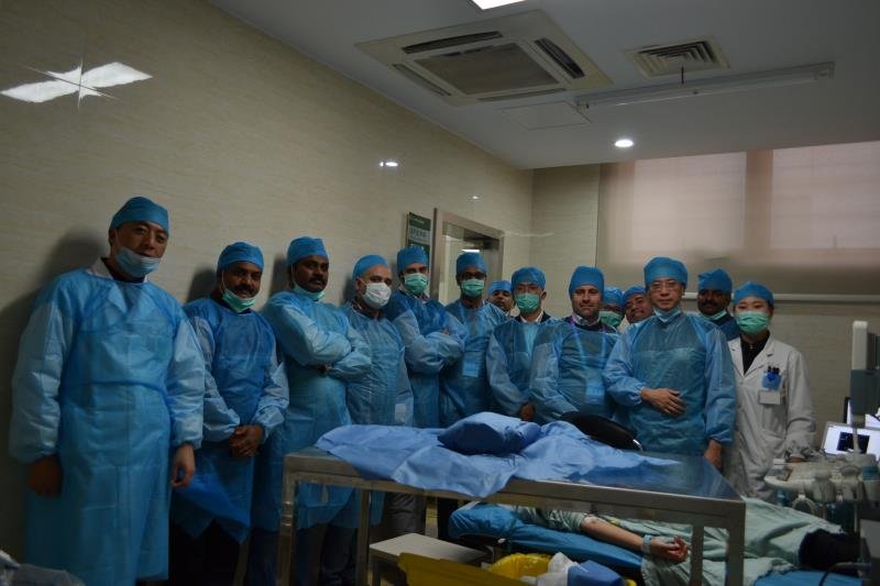 日前,由世界腫瘤介入協會(SIO)、亞太腫瘤介入學會(APSIO)、中國醫藥教育協會第二屆世界腫瘤介入年度消融大會在我省舉行。受大會委托, 1月8日下午,附屬醫院承擔了來自德國、法國、日本、葡萄牙、印度、黎巴嫩、肯尼亞、菲律賓及尼日利亞等多國SIO會員的現場手術觀摩任務,培訓與會專家的甲狀腺結節微波消融技術。