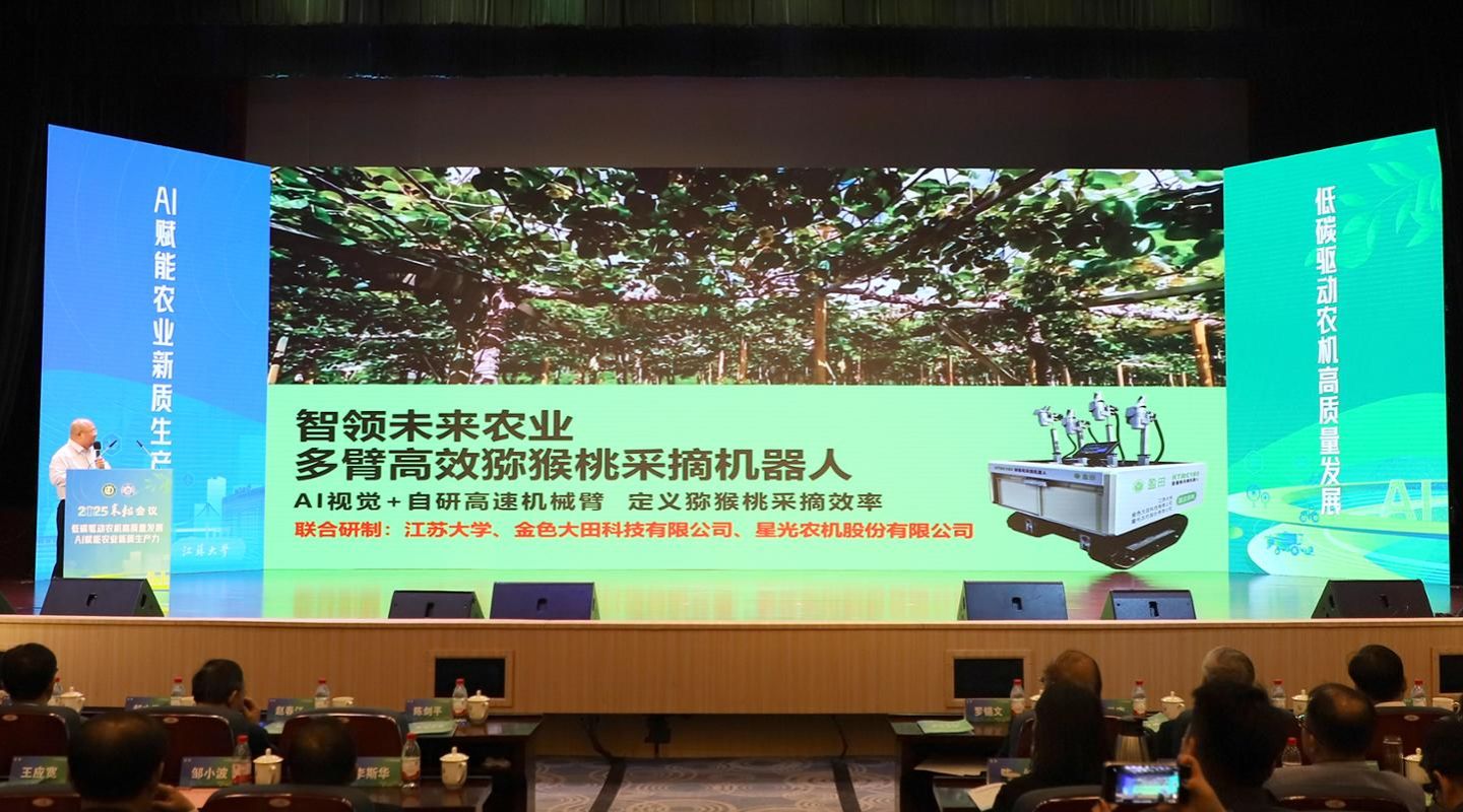 開幕式上舉行了江蘇大學創新成果發布環節。陳學庚院士團隊發布農田殘膜高效回收關鍵技術及裝備、“小麥+”套種全程機械化關鍵技術及裝備;李耀明教授團隊發布再生稻單產提升農機農藝融合關鍵技術與示范;尹必峰教授團隊發布大馬力混合動力拖拉機共性關鍵技術與新產品創制;劉繼展教授團隊發布生產型多臂高速獼猴桃采摘機器人;楊寧教授團隊發布江大田芯1號作物病害檢測專用芯片。