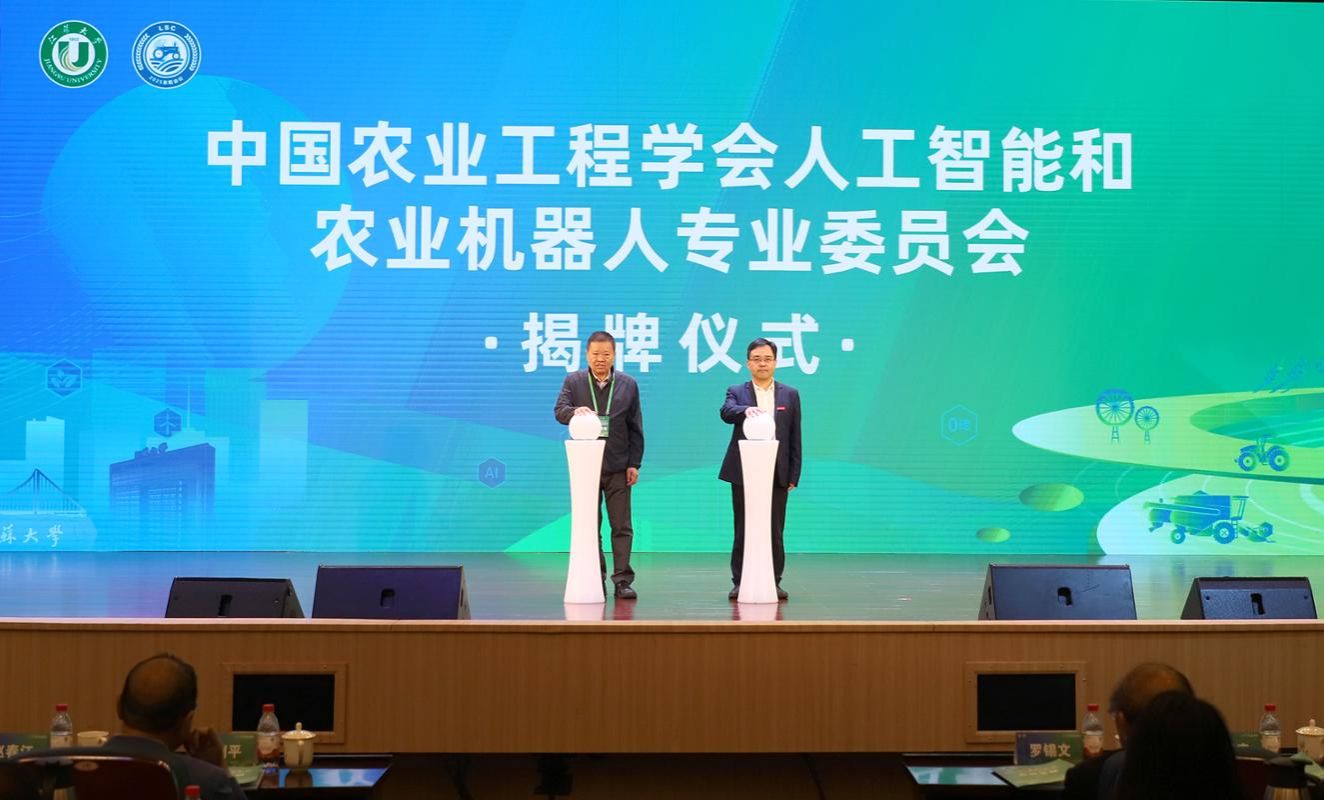 朱明和副校長王景全共同按動啟動柱,為“中國農業工程學會人工智能和農業機器人專業委員會”揭牌。