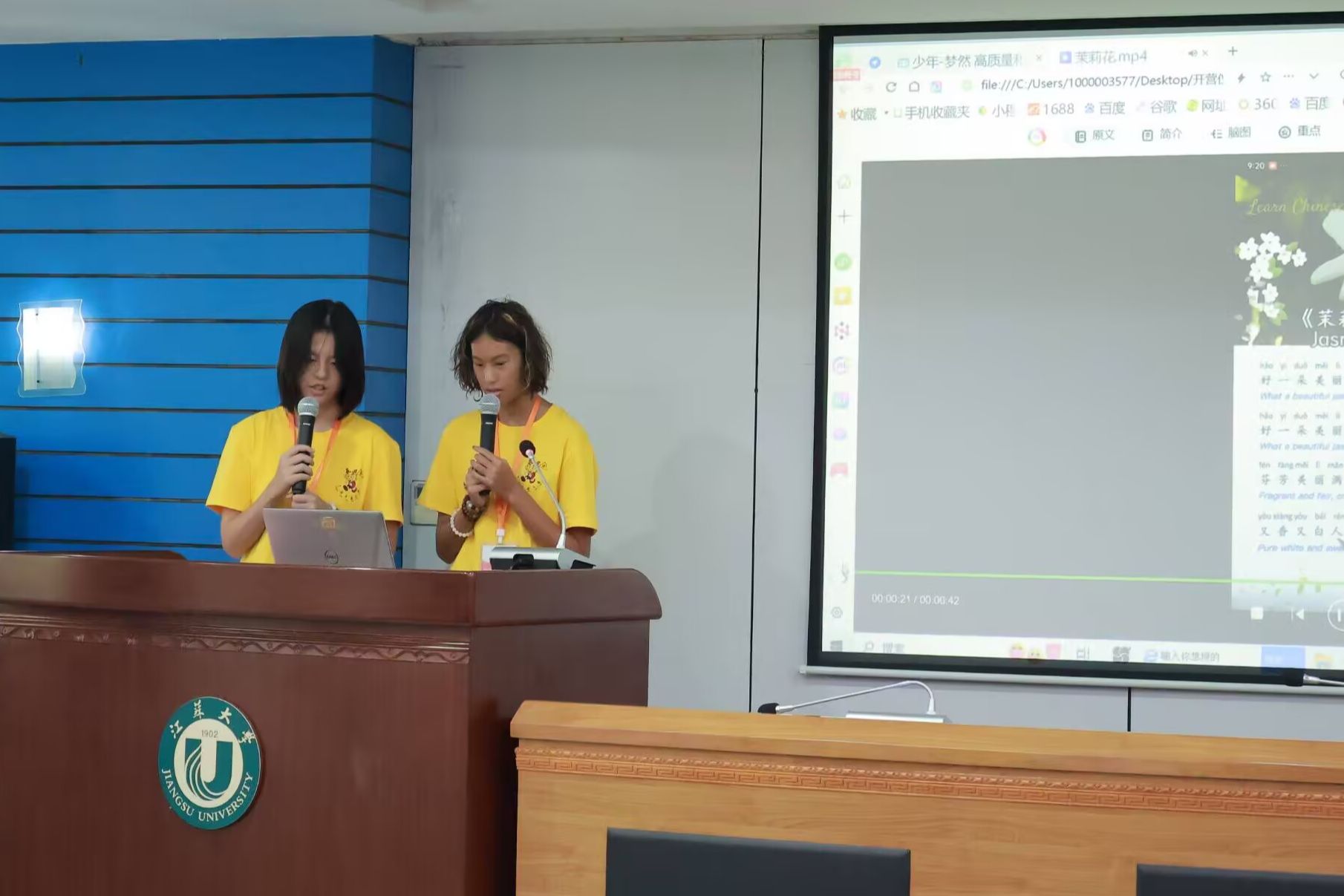 開營儀式上,精彩紛呈的文藝表演展現了傳統與現代、東方與西方的文化交融。江蘇大學教師、非遺古琴傳習人吳蕓莉帶來了古琴獨奏《酒狂》,西班牙營員沈馨宜表演了舞蹈,加拿大營員郭伯恩和郭安雅演繹了男女聲二重唱《推開世界的門》,何舒窈和李馨怡傾情獻唱江蘇民歌《茉莉花》,江蘇大學志愿者團隊以飽含深情的原創朗誦《北固山下的尋根之旅》詮釋了文化尋根的情懷。