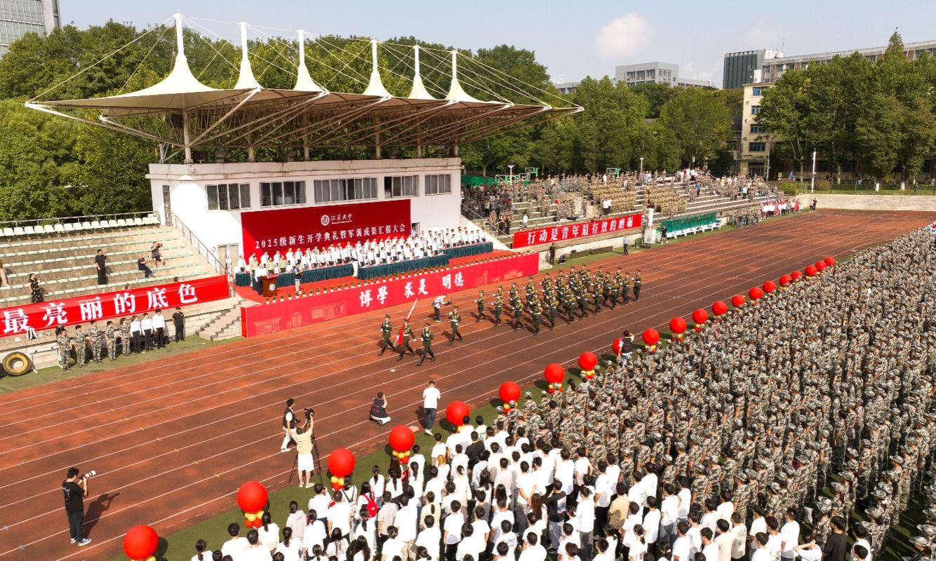 9月23日,2025級新生開學典禮暨軍訓成果匯報大會在東山操場舉行。全體在校校領導、黨委常委,校友代表,相關部門和各學院、書院主要負責人,教師、輔導員代表,全體2025級新生參加開學典禮。
