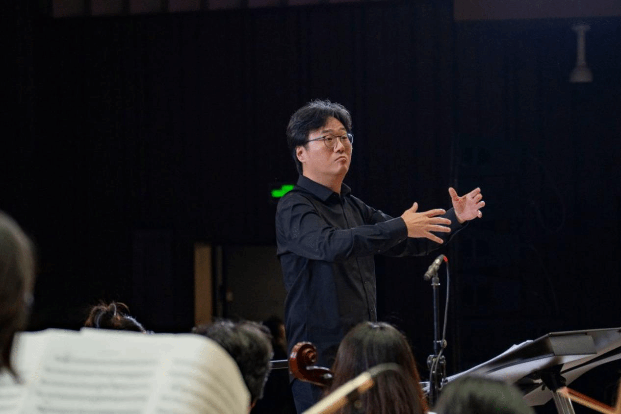 音樂(lè)會(huì)的第一篇章由鄒清宇執(zhí)棒啟幕。小約翰·施特勞斯的《蝙蝠序曲》以歡騰的節(jié)奏點(diǎn)亮現(xiàn)場(chǎng);《南國(guó)玫瑰圓舞曲》翩然展開(kāi),流淌出維也納式的典雅與浪漫;《鋼鐵洪流進(jìn)行曲》以鏗鏘節(jié)奏展現(xiàn)行進(jìn)力量;《閃閃的紅星》以交響敘事重塑紅色經(jīng)典,完成一幕深情而恢弘的音樂(lè)圖景。