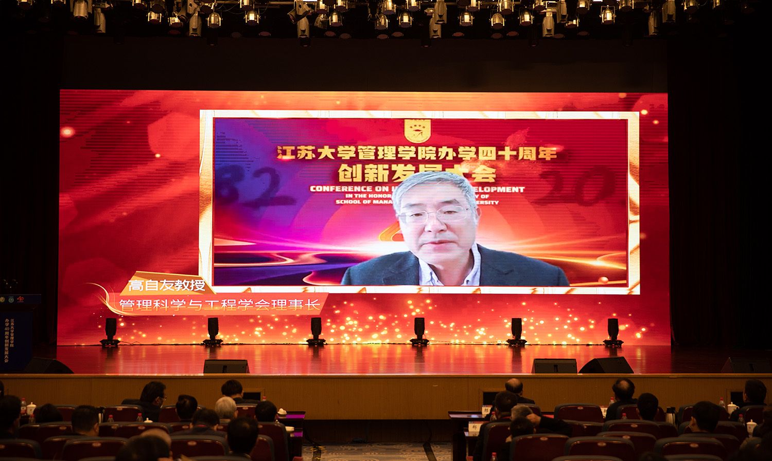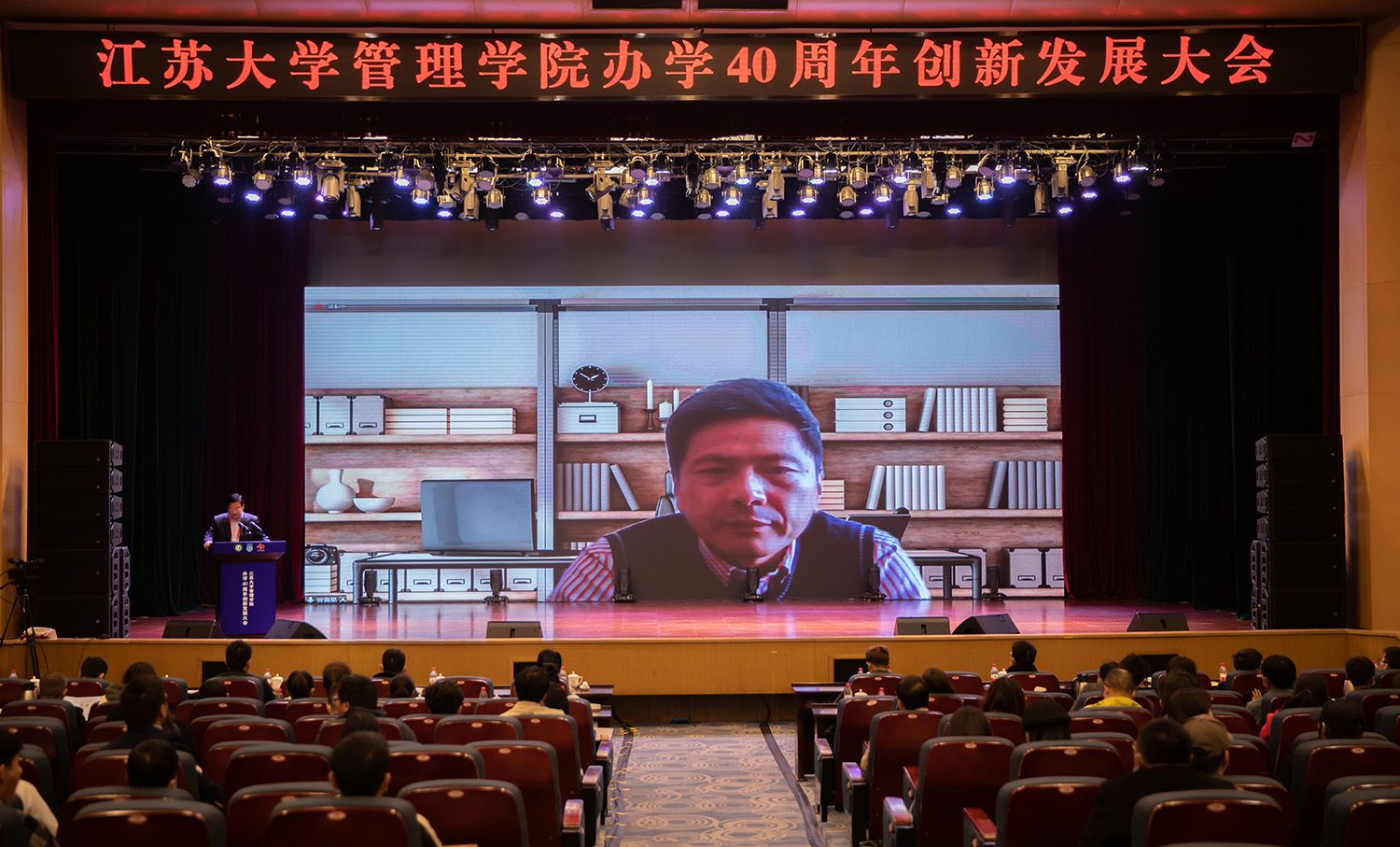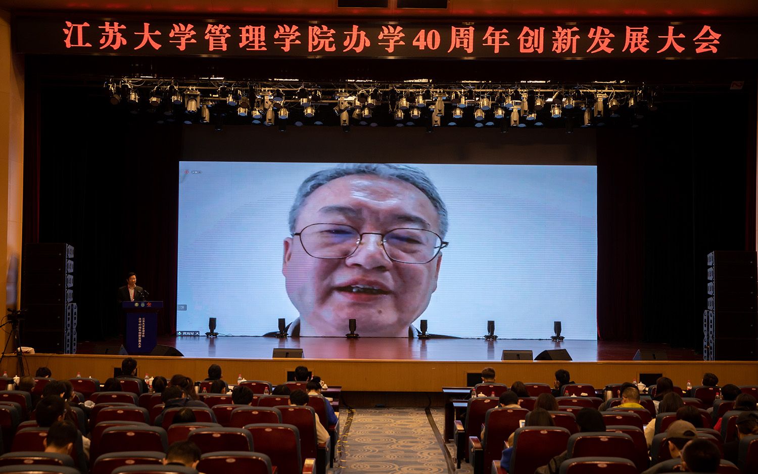 管理科學與工程學會理事長、俄羅斯自然科學院外籍院士高自友,江蘇省紀檢監察學會會長江里程,北京航空航天大學黨委常委、副校長黃海軍,中國福馬機械集團有限公司黨委副書記、總經理蔡濟波,上海交通大學安泰經濟與管理學院特聘教授曾賽星,江蘇大學校長顏曉紅,江蘇大學黨委副書記李洪波,我校部分老領導、老教授,有關政府部門領導,部分校友代表、企業代表,學校相關職能部門、學院主要負責人,管理學院教職工及學生代表等線上線下出席大會。管理學院黨委書記王麗敏主持大會。