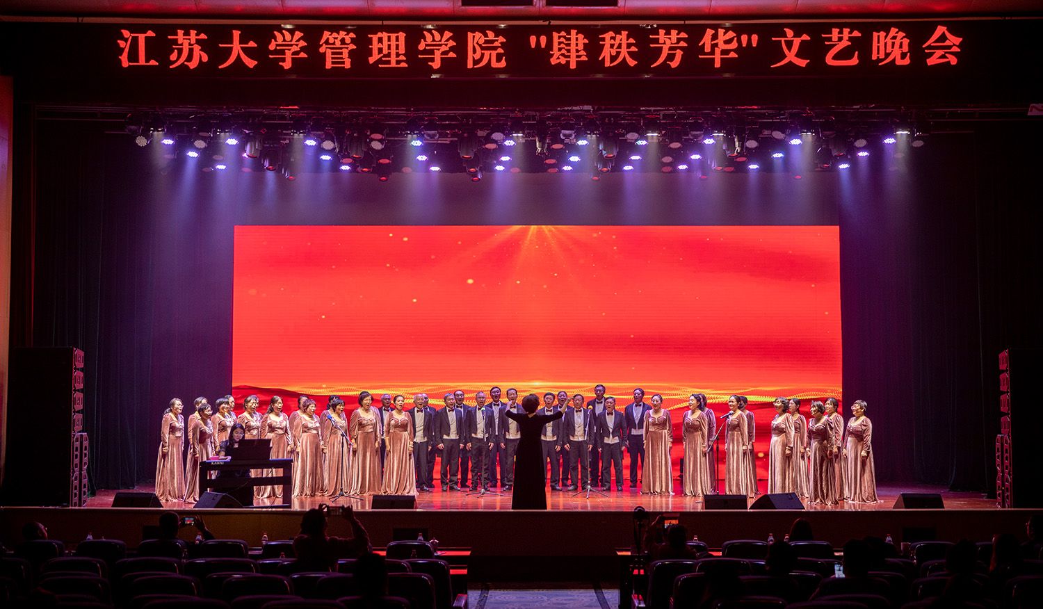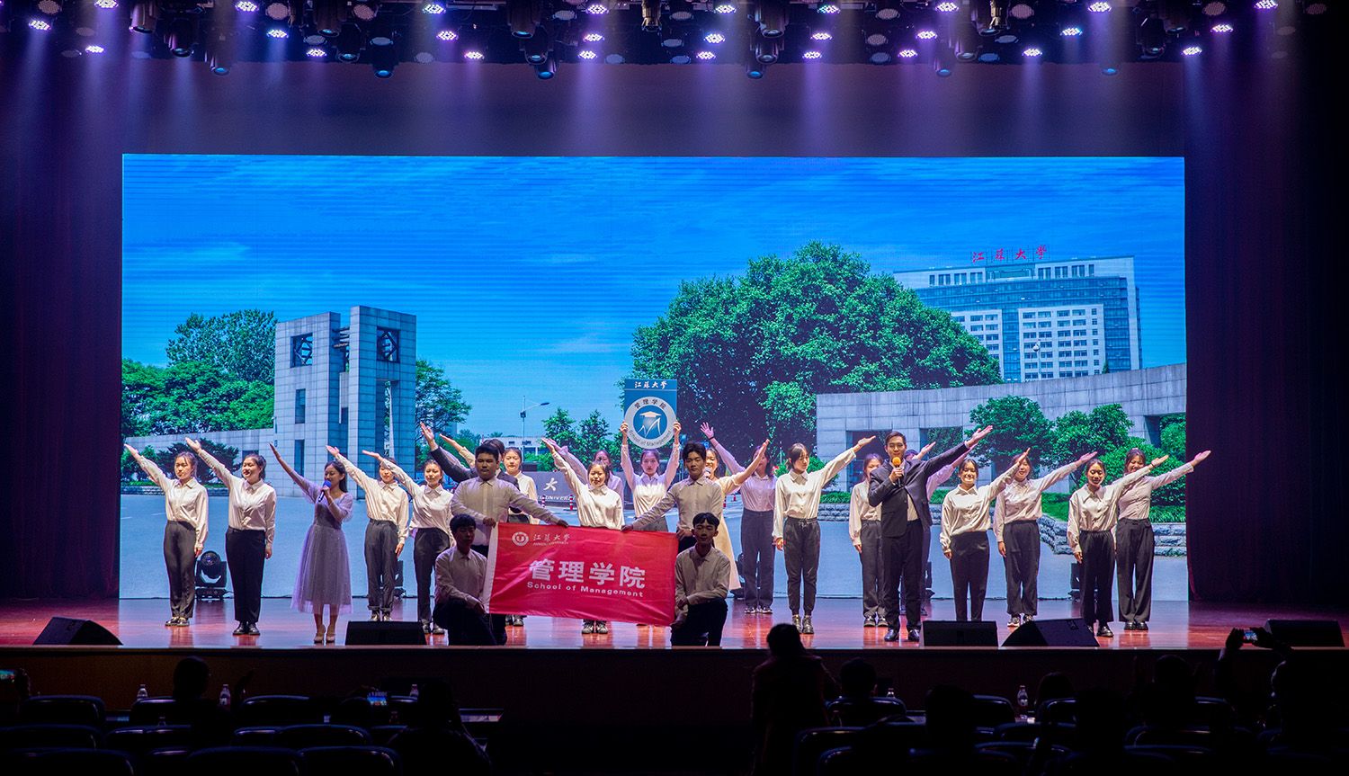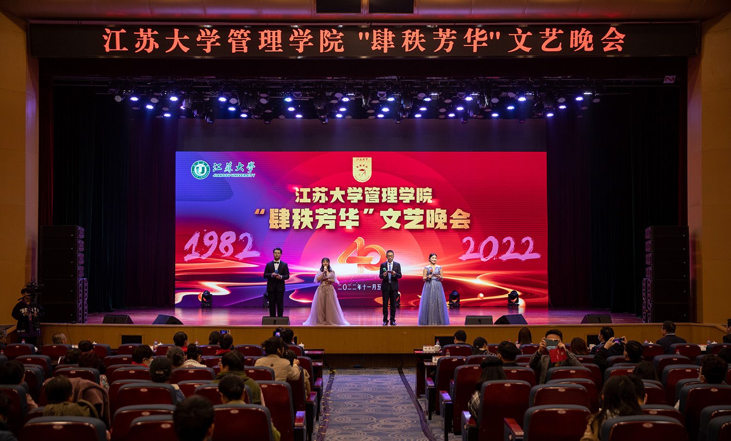 當晚,“肆秩芳華”文藝晚會在小禮堂上演,師生們用歌舞、小品、走秀等文藝節目,慶祝管理學院辦學40周年。(管理學院)