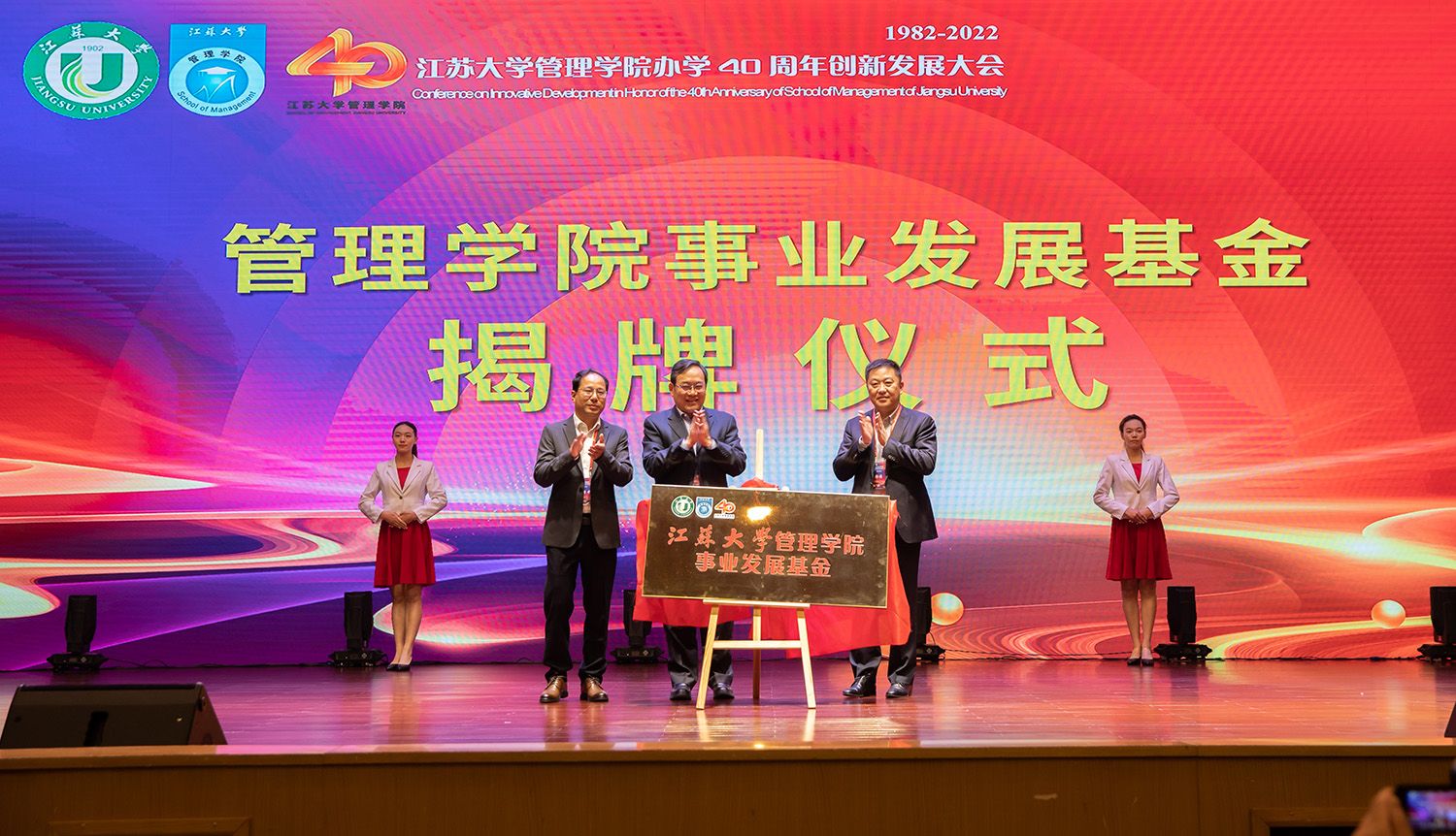 會上,江蘇大學原黨委書記、管理學院校友會顧問范明,江蘇大學校友會與對外聯絡辦公室主任任澤中,江蘇大學鎮江校友會會長、管理學院校友會副會長鄭偉共同為管理學院事業發展基金揭牌。