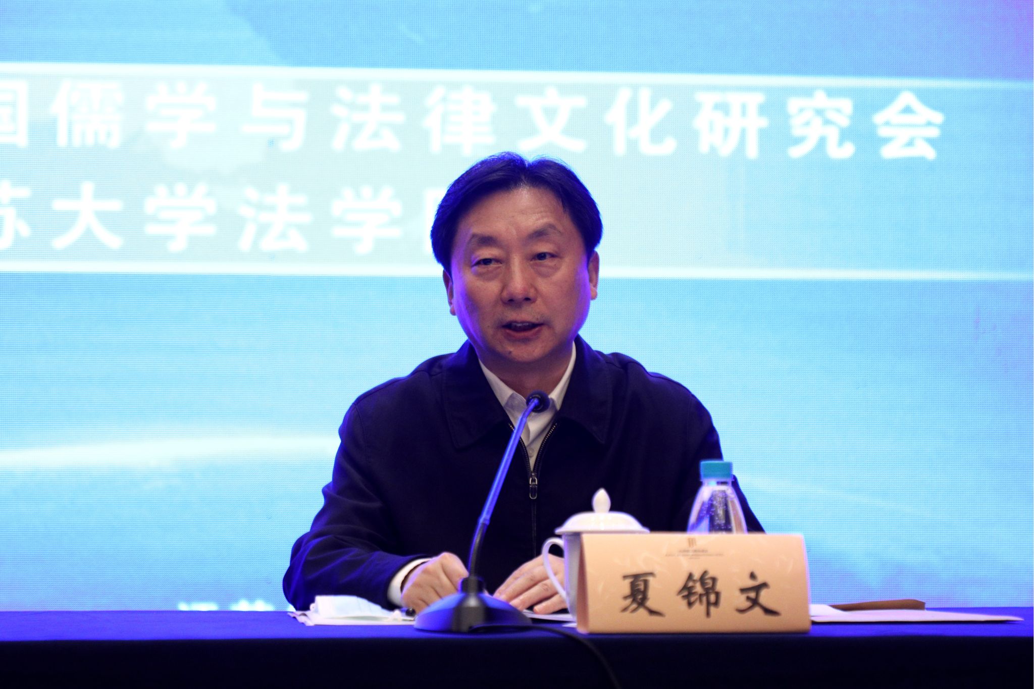 江蘇省社會科學院黨委書記、院長,中國儒學與法律文化研究會執行會長夏錦文主持開幕式并發表主題演講。鎮江市委常委、市委政法委書記、市法學會會長許文,中國儒學與法律文化研究會會長、華東政法大學教授龔汝富,我校校長顏曉紅,江蘇師范大學法學院黨委書記張明新出席開幕式。南京大學法學院教授張仁善,華東政法大學教授王沛,中國人民大學尤教授陳俊、朱騰,復旦大學教授王志強等國內知名學者參加研討會。