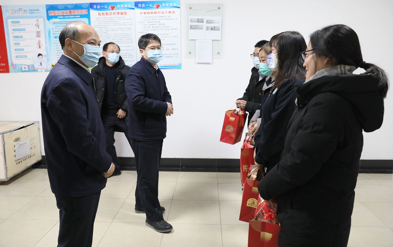 寅虎辭舊歲,卯兔迎新春。1月22日上午,農歷兔年大年初一,校黨委書記袁壽其,校黨委常委、副校長、院黨委書記張濟建,來到附屬醫院看望慰問春節期間堅守在門診一站式服務臺、急診中心、檢驗、藥房等一線崗位的醫務人員,送去新春的問候和真摯的祝福,感謝他們默默無聞的無私奉獻,希望他們注意身體,認真值守,確保春節期間的醫療保障服務安全有序運轉,以實際行動為廣大人民群眾健康保駕護航。