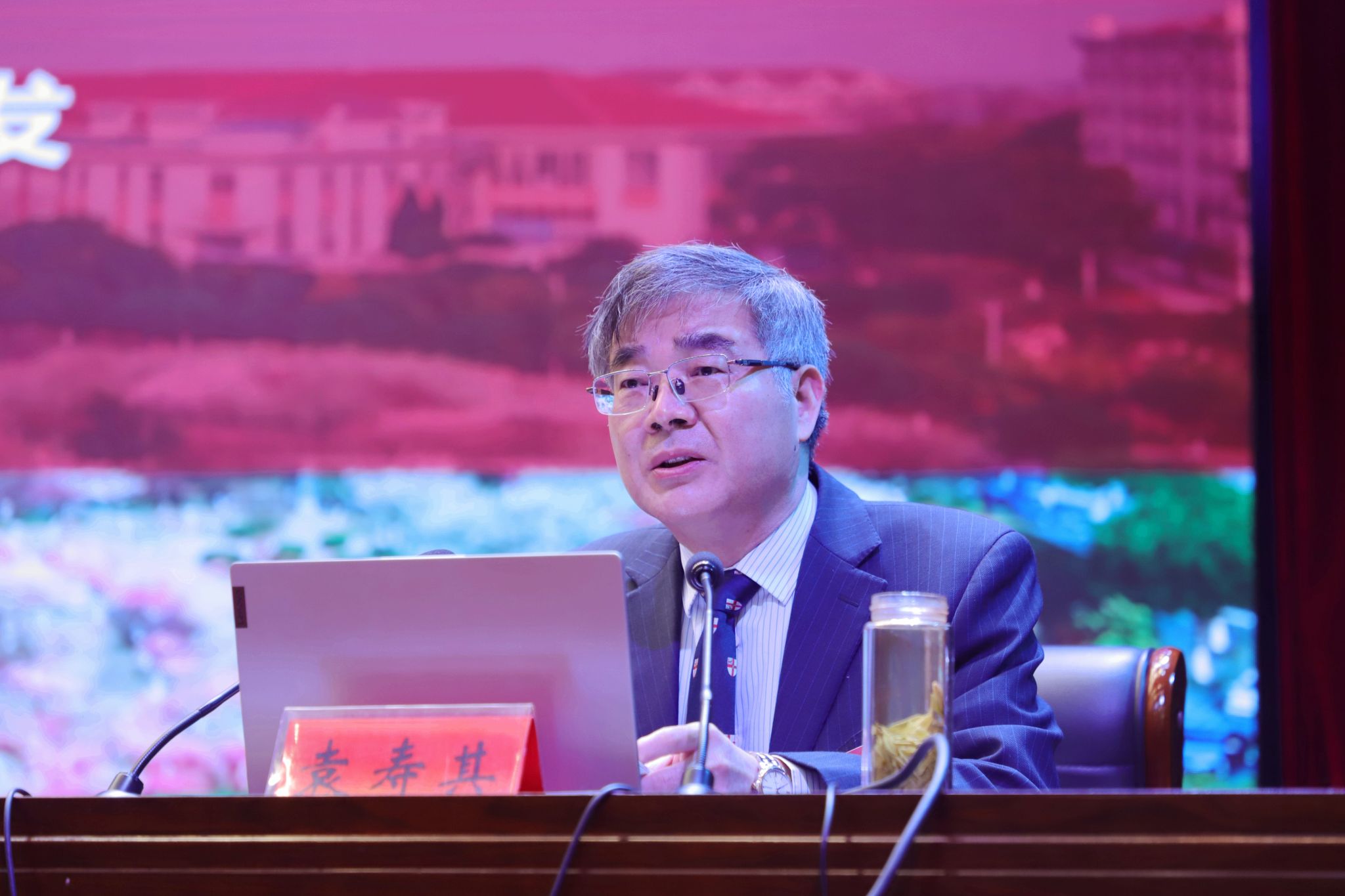 袁壽其以《匯聚力量 乘勢而上 以黨的二十大精神引領學校事業更高質量發展》為題,從“深刻領會黨的二十大精神,凝心聚力、培根鑄魂,打牢思想根基”“準確把握科教興國重大戰略,汲取力量、面向未來,把穩奮斗方向”“全面貫徹落實黨的二十大精神,團結奮斗、實干篤行,推動學校事業更高質量發展”三個方面為師生講授了一堂意義深刻的思政課。他強調,全體師生要深刻領會黨的二十大精神,落實好立德樹人根本任務,堅守為黨育人、為國育才使命;走好新時代人才自主培養之路,全面提高人才培養質量;推動實現科技自立自強,加快農機特色高水平大學建設。他要求廣大師生員工樹牢理想、滿懷信心,堅定共產主義信仰,敢于實踐、勇于亮劍,矢志奮斗、不負使命,匯聚力量、乘勢而上,鑄牢事業發展厚實根基。
