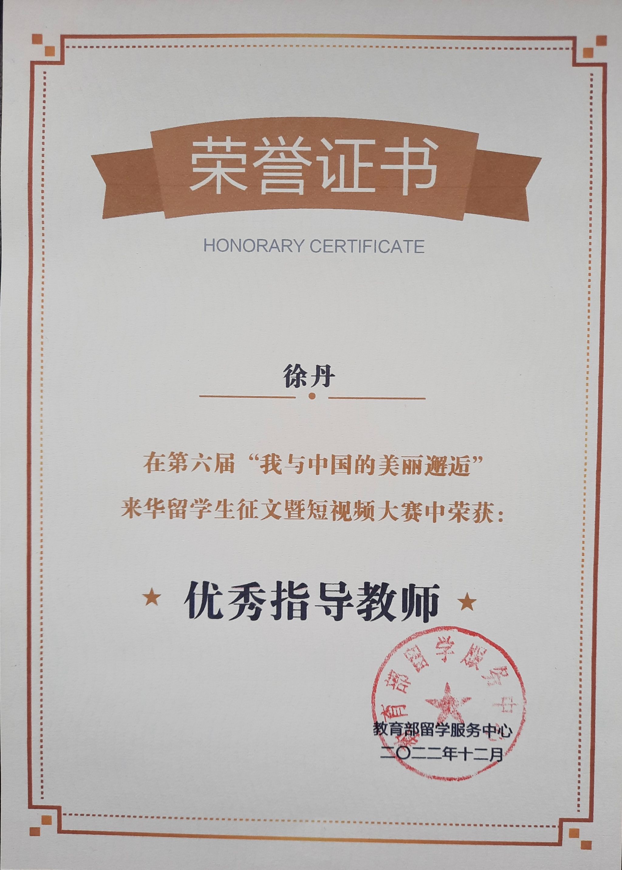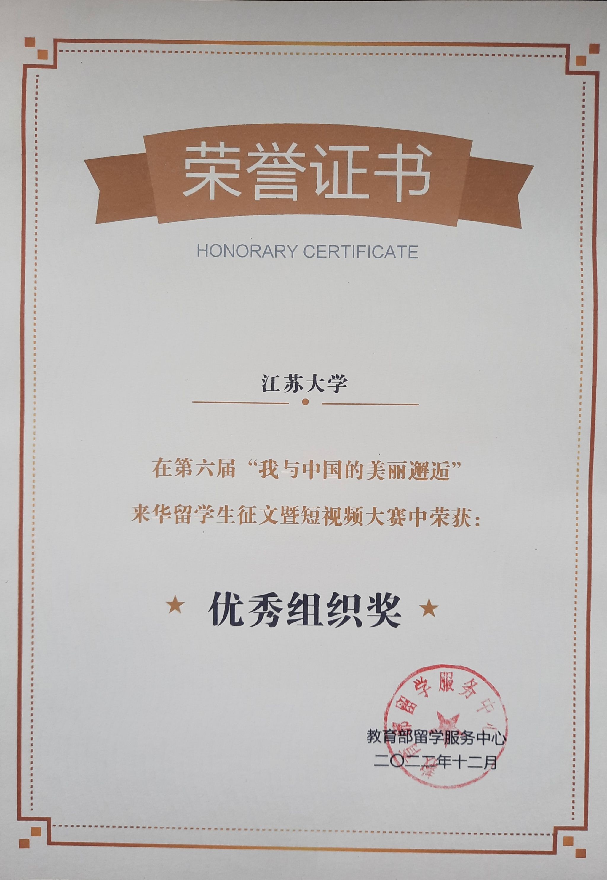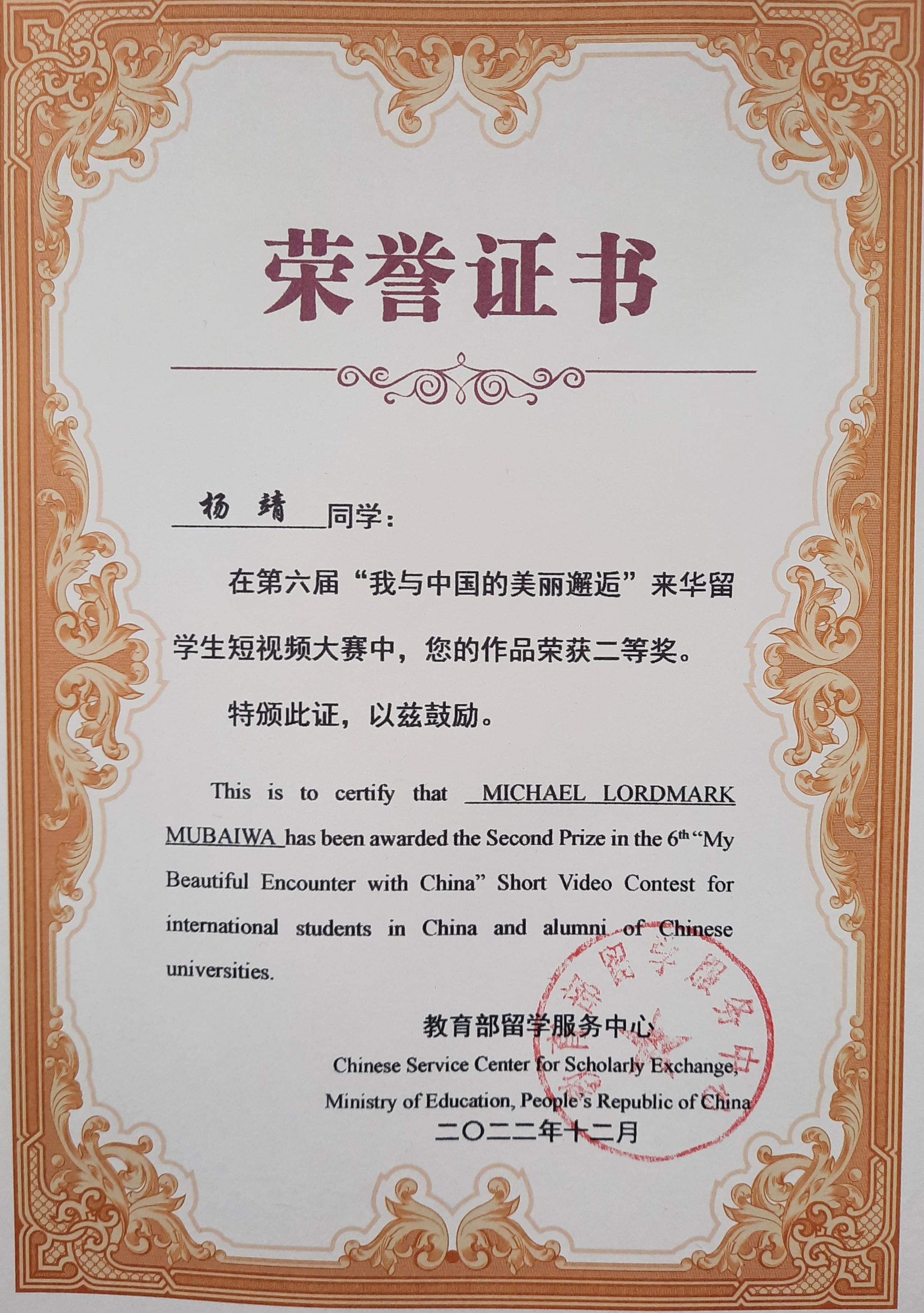 近日,受教育部國(guó)際合作與交流司委托,教育部留學(xué)服務(wù)中心舉辦的“我與中國(guó)的美麗邂逅”第六屆來(lái)華留學(xué)生征文暨短視頻大賽結(jié)果揭曉,我校津巴布韋籍留學(xué)生楊靖征文作品獲得全國(guó)二等獎(jiǎng),徐丹獲“優(yōu)秀指導(dǎo)教師”,學(xué)校獲“優(yōu)秀組織獎(jiǎng)”。