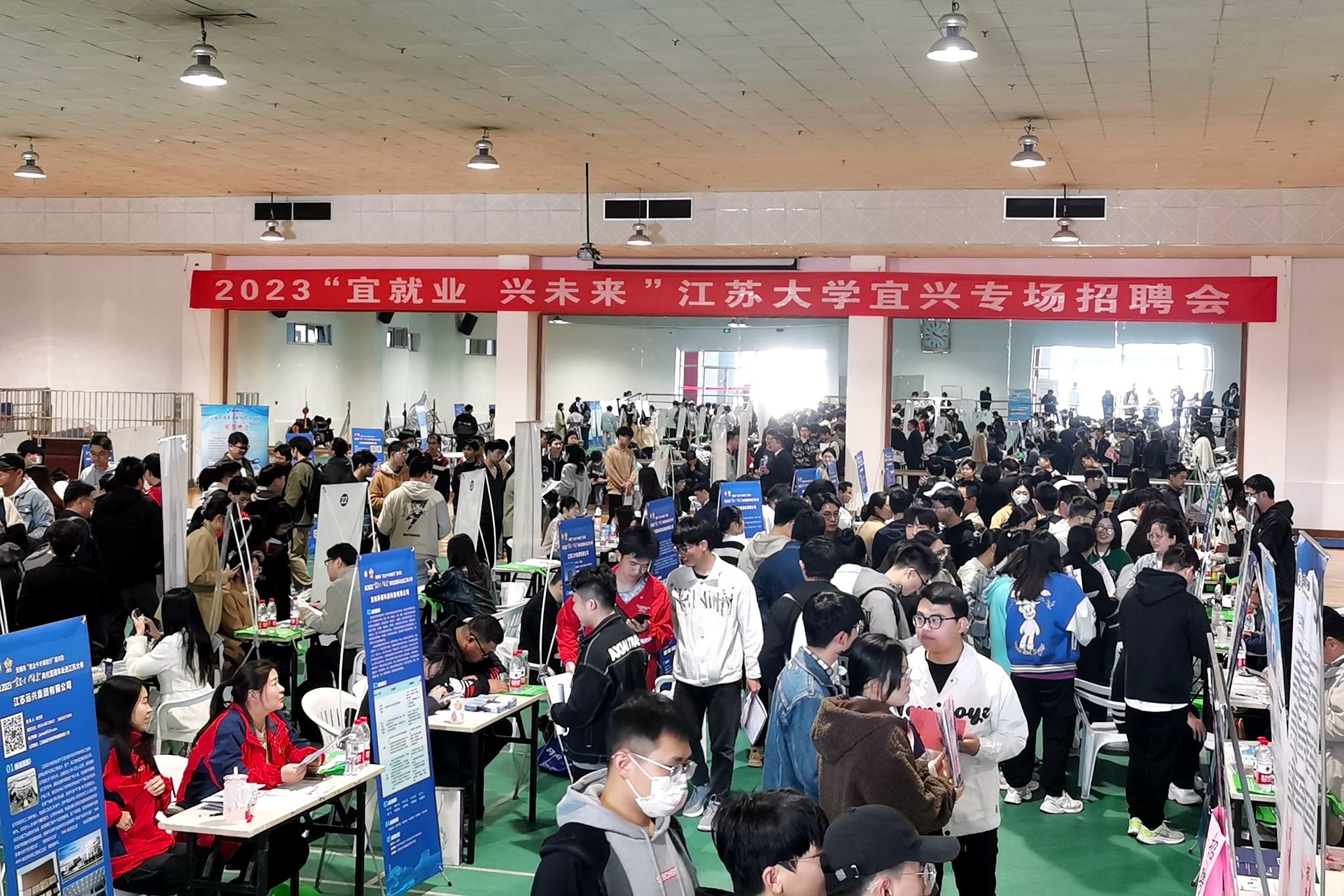 啟動儀式后,寶銀特種鋼管有限公司、國聯證券等42家宜興市重點用人單位開展專場招聘活動,提供就業崗位近1000個,近800名畢業生現場求職。