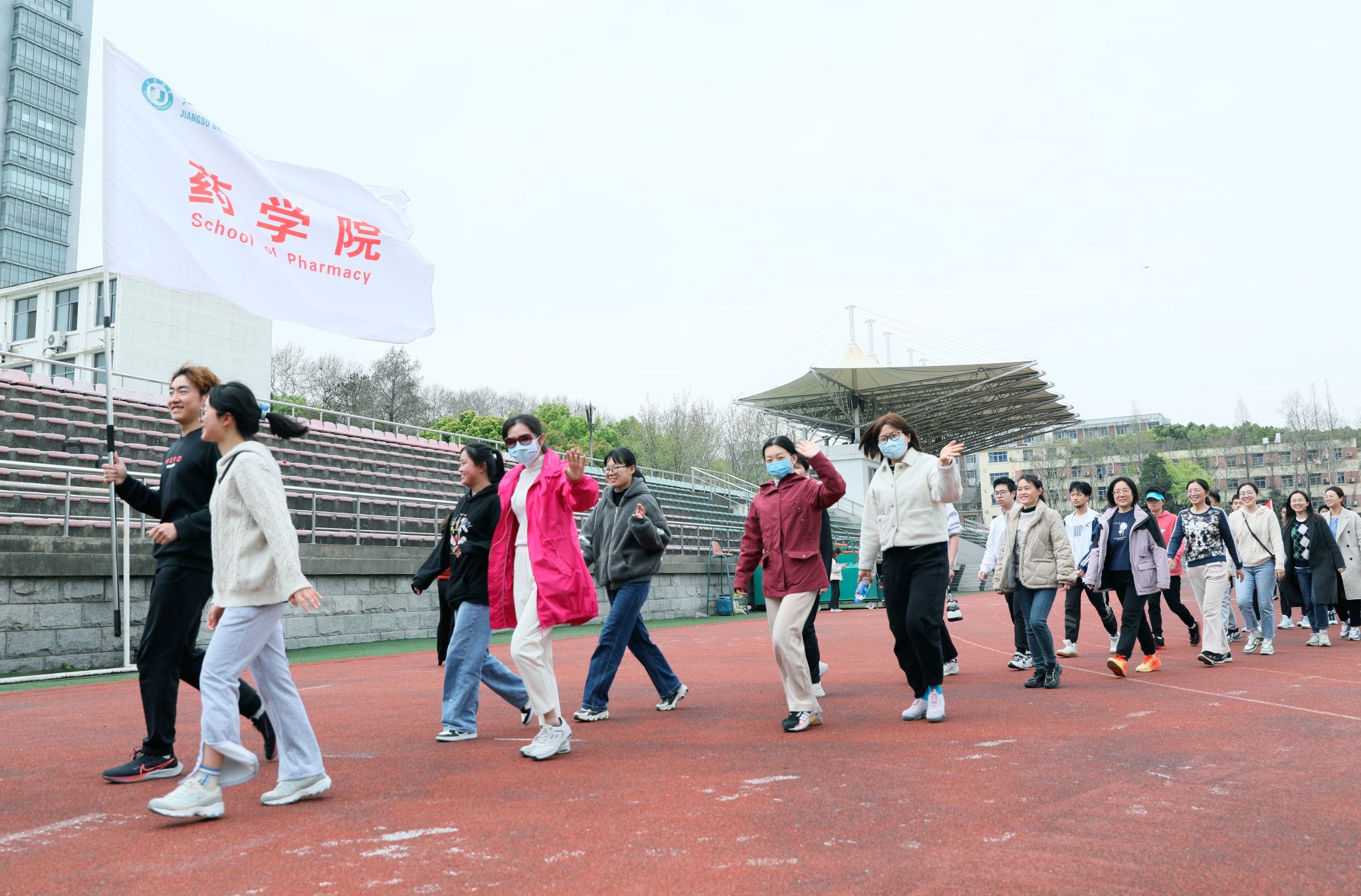 學院及機關人員組成的40個方陣、1200多名師生,高舉旗幟,精神抖擻,在沿途大學生志愿者的引導下,完成校園環線健步走。