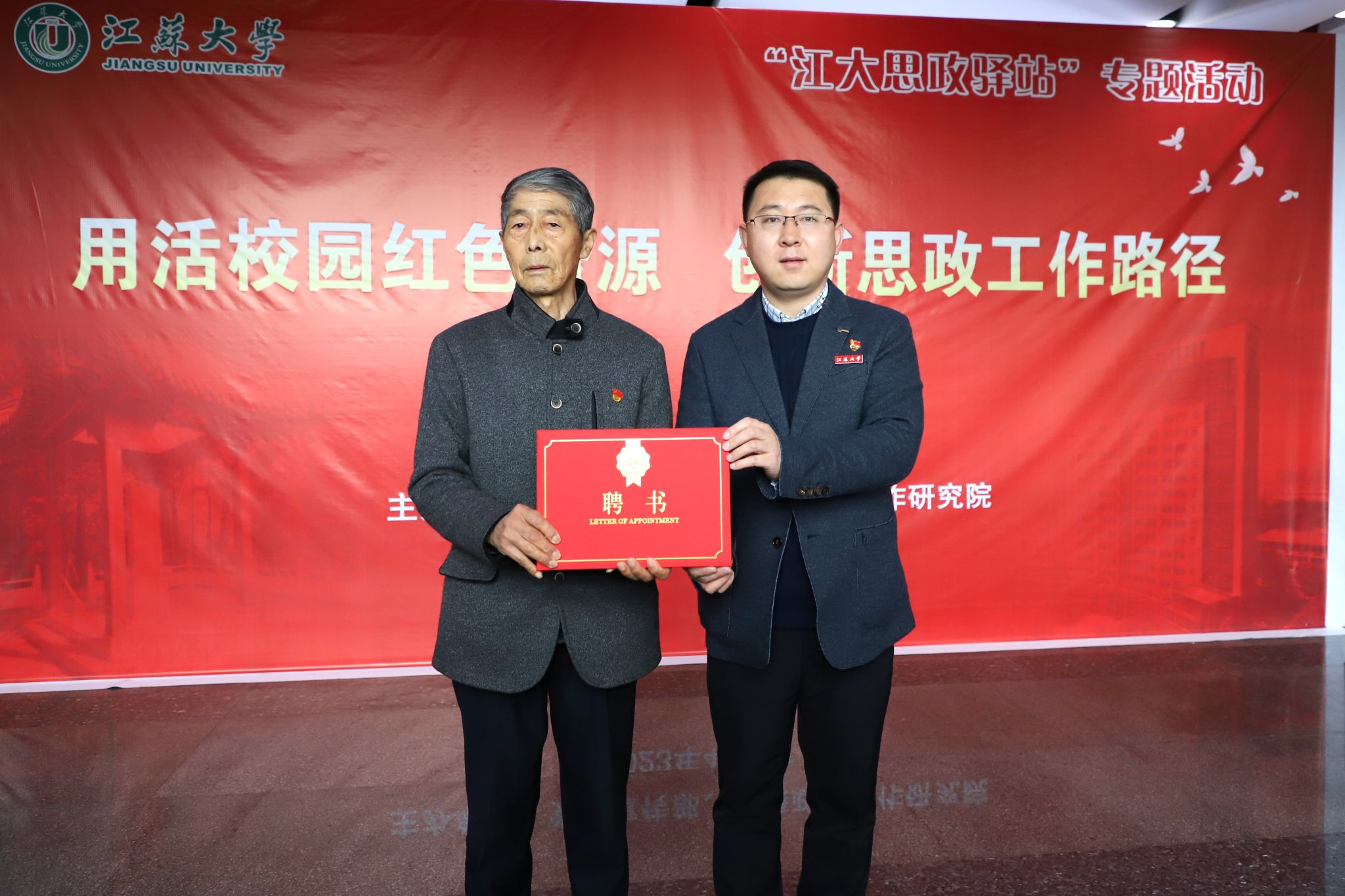 為用活校園寶貴紅色資源,賡續傳承好紅色基因,學校聘請王立榮為江大思政驛站紅色文化顧問,校團委書記徐占東為王立榮頒發聘書。
