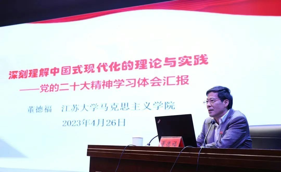 開班式后,馬克思主義學院董德福教授以《深刻理解中國式現代化的理論與實踐——黨的二十大精神學習體會匯報》為題作第一次集中學習會專題報告,系統闡述了中國式現代化的科學內涵和時代價值,為正確理解中國式現代化、全面貫徹落實黨的二十大精神作了深入淺出的講解。