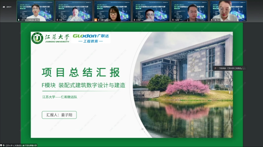 由我校土力學院韓豫、張富賓、王路、王澤念等老師指導,姜子陽、楊世超、顧城城、林崢峰、容鑄誠同學組成的“仁和致遠隊”和魯向陽、王俊杰、師瑞怡、彭羅宇、李佳偉同學組成的“天天都是卷王隊”獲F模塊“裝配式建筑數字設計與建造”特等獎,耿楊洋、岑家曦、何博、吳晗、裴中玉同學組成的“致遠創造小隊”獲G模塊“智能建造與管理創新”特等獎。