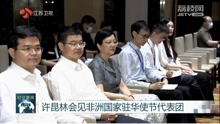 許昆林對(duì)非洲國家駐華使節(jié)代表團(tuán)一行來訪表示熱烈歡迎,并簡要介紹了江蘇經(jīng)濟(jì)社會(huì)發(fā)展情況。他說,中非友好源遠(yuǎn)流長、歷久彌新。近年來,在習(xí)近平主席提出的真實(shí)親誠對(duì)非政策理念和正確義利觀引領(lǐng)下,江蘇與非洲關(guān)系發(fā)展按下了“加速鍵”,駛?cè)肓恕翱燔嚨馈薄=衲晔枪步ā耙粠б宦贰背h提出10周年。站在新的歷史起點(diǎn)上,期待與各位使節(jié)攜手努力,在中非全面戰(zhàn)略合作伙伴關(guān)系指引下,在外交部的部署指導(dǎo)下,積極落實(shí)中非合作論壇會(huì)議成果,合力推動(dòng)實(shí)施“九項(xiàng)工程”,進(jìn)一步加強(qiáng)交往平臺(tái)建設(shè)、深化經(jīng)貿(mào)領(lǐng)域合作、豐富人文交流內(nèi)涵,在更高水平上實(shí)現(xiàn)合作共贏、共同發(fā)展。真誠歡迎大家多來江蘇走一走、看一看,親身感知江蘇的發(fā)展脈動(dòng),更多地宣傳推介江蘇,為打造新時(shí)代更加緊密的中非命運(yùn)共同體作出更大貢獻(xiàn)。