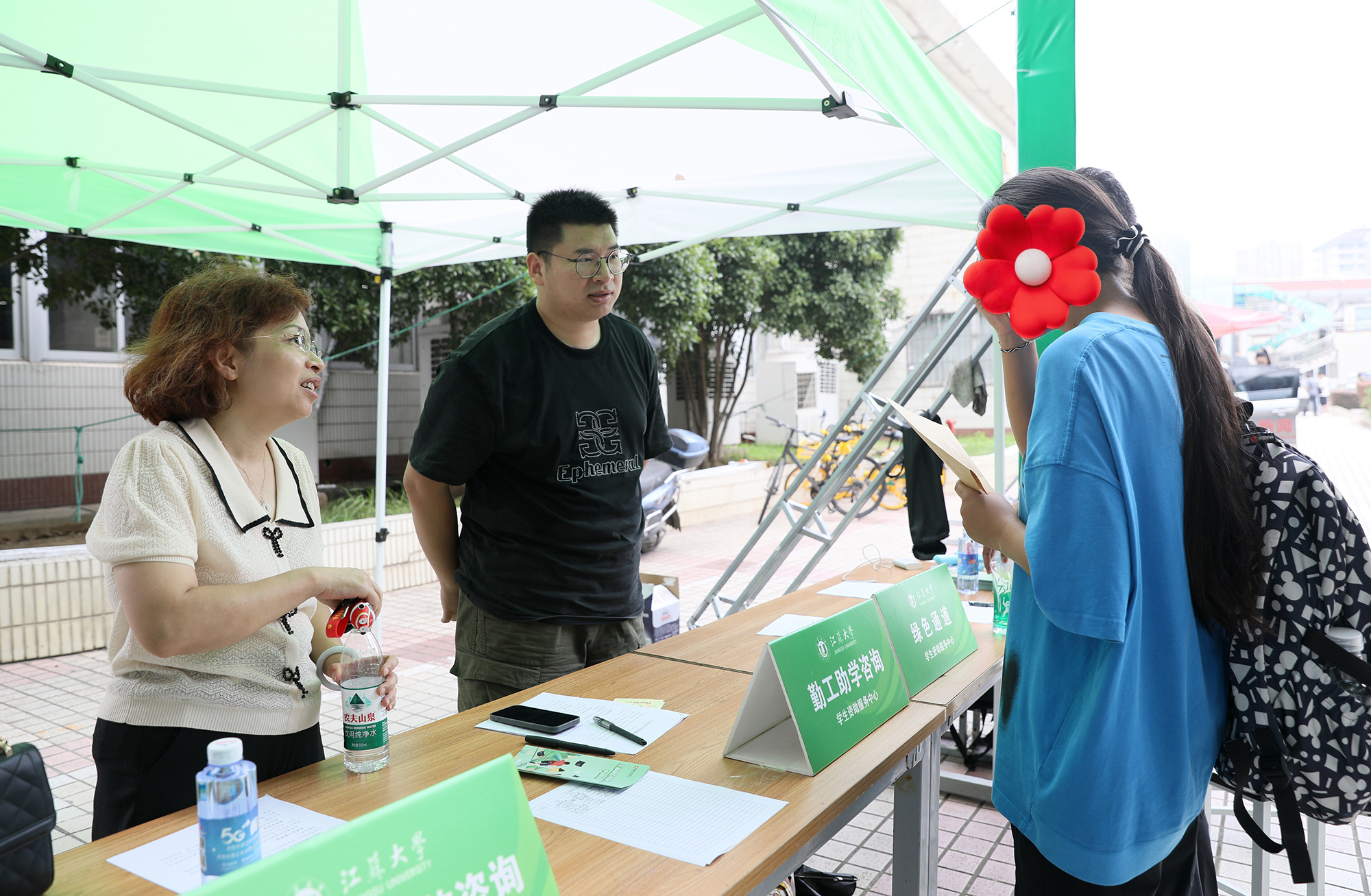 這次“迎新”儀式感滿滿,江蘇大學(xué)和各學(xué)院用各具特色的方式迎接“萌新”。學(xué)校在后勤保障上不斷推出暖心服務(wù):全校各食堂全天開放,免費提供飲用水、綠豆湯,方便新生開學(xué)第一餐和家長休息;各報到宿舍管理員肩戴“有困難請找我”袖章,準(zhǔn)備了小推車、大麥茶等迎接新生和家長到來;校園內(nèi)設(shè)置多處迎新咨詢服務(wù)臺,提供指引和咨詢服務(wù)。