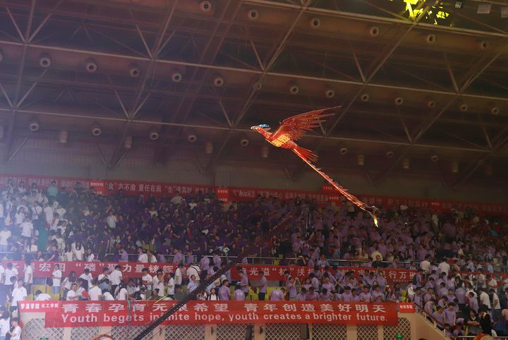 典禮現場,師生代表帶來情景朗誦《一路生花》、歌舞《祝我們前程似錦》等精彩節目,深情回望江大時光與青春歲月。典禮尾聲,全場起立,齊聲合唱校歌《百年輝煌向未來》,兩只象征美好的“金鳳凰”于場館上空盤旋,將氣氛推向高潮。